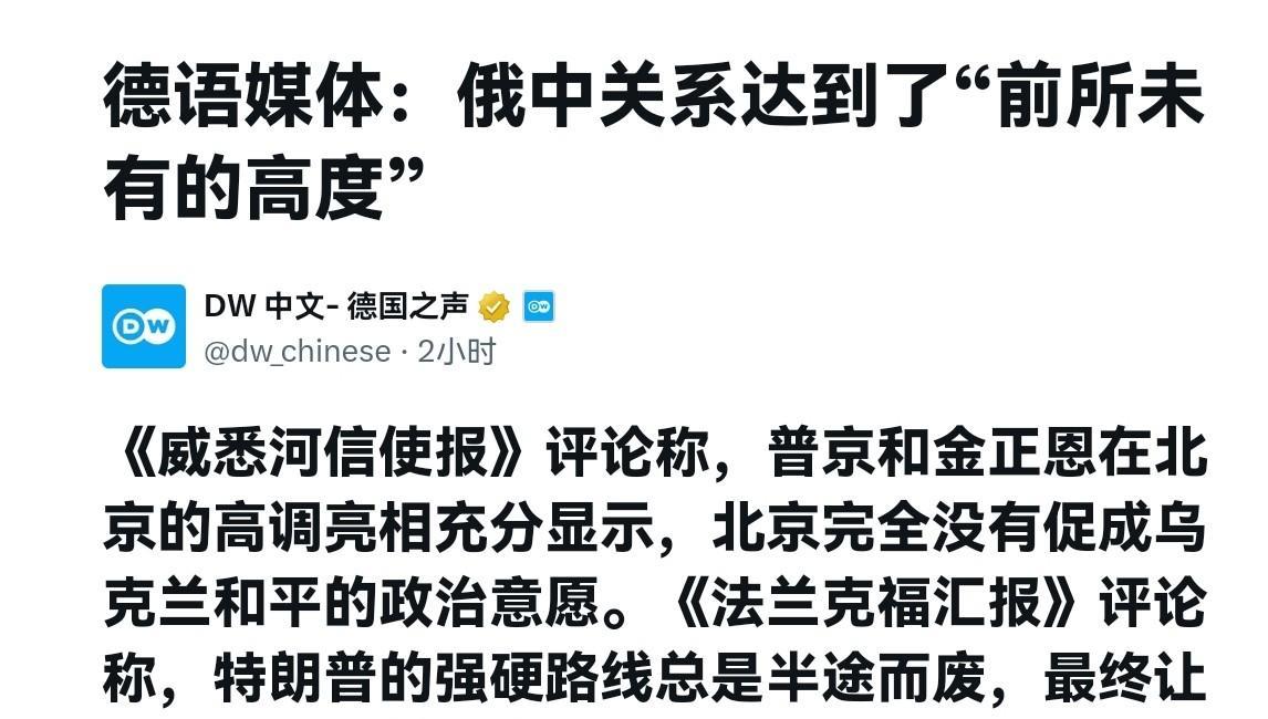 对于俄罗斯借助出席中国的重大活动,开展多方面的外交,深化与中国的合作,德媒对我们非常不满!9月4日,德媒刊文声称,普京和金正恩在北京的高调亮相充分显示,北京完全没有促成乌克兰和平的政治意愿。而双方表示,俄中关系达到了前所未有的高度,尤其对欧洲人来说无疑是一场令人失望的失败,乌克兰和平,中俄两国只字未提。 德媒表示,此前曾有人期望中国会向普京施压,敦促他尽快同乌克兰总统泽连斯基展开谈判。现在,这一期望想必彻底破灭了。中国方面完全有这样做的能力,但显然北京缺乏这样的政治意愿。很显然,从德媒的论调来看,德媒对于我们的做法非常的不满。简而言之,依德媒之见,其一,德媒认为中国应疏远俄罗斯,不为俄罗斯的外交提供便利。 其二,德媒认为我们应该对俄罗斯施压,以促成俄乌战争结束。不过,我们要问的是,在我们国家举办的重大活动,我们自有我们的优先事项。再者,俄乌战争,我们并非当事方,美国和欧洲作为重要参与者不能促成俄乌战争停火,现在却把停火止战的任务甩给我们,这是什么逻辑?明明西方是希望我们帮忙,却摆出一副颐指气使的架势,这是正确的做法吗? 并且,必须说的是,俄罗斯是一个独立自主的大国,中俄是友好国家,西方可能也高估了我们对于俄罗斯的影响力。西方国家,包括美国认为非常棘手的问题,却认为我们可以轻易做到,这怎么可能。如果俄乌战争真有短平快的解决方式,恐怕战争也不会一直持续到今天。我们致力于俄乌战争停火,但首先是美俄,俄乌要达成共识。如果这三方不达成共识,俄乌战争绝无停火可能。而西方国家想要为自身行为甩锅卸责给我们的做法,我们不可能接受。