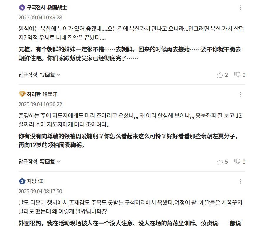 【金正恩对李在明替身只吐一个字,韩国人听了当场破防】 在2018年的中秋佳节一别之后,韩国议长禹元植终于趁着来华出席抗战胜利80周年大阅兵的契机,在北京见到了阔别7年的朝鲜最高领导人金正恩。只不过和7年前的那次会晤不同,金、禹两人的这次交流只能用冷淡甚至是尴尬来形容。禹元植说:“这是我们时隔7年再次见面”,而金正恩只是回答了他一个简单到不能再简单的“是”,就再没有做出别的什么回应了。 禹元植的热情和金正恩的冷淡形成了对比,把韩国舆论场上好些关注“金禹会”的韩国网民都给搞破防了,他们在评论区里纷纷破口大骂,有人责怪金正恩不识礼数,还有人嘲讽禹元植拿热脸去贴“敌人”的冷屁股。 这事说开来,其实禹元植也挺冤的。因为他这趟来华本就是身不由己,如果不是李在明因为担心应邀来华会惹恼美国,禹元植其实根本犯不着给他当这个“替身”。 作为韩国政坛上赫赫有名的进步派人士和左翼政治家,禹元植的家族和朝鲜存在很深的渊源。禹元植之父禹济华是黄海道延白人,而他妈妈金礼贞则是首尔人,两人于1936年喜结连理,并于1957年生下禹元植。因为朝鲜战争的缘故,朝韩两国在禹元植出生之前就已隔三八线南北对峙,金礼贞和禹元植留在了韩国,而禹元植的大姐和二姐则成了朝鲜人。 早在“金禹会”之前,此次陪同禹元植一同访华的共同民主党议员朴智元就曾指出,尽管朝韩双方高层此次难得聚首,但若要重温2018年“金文会”上的友好时刻,只怕是难于登天。朴智元将问题的责任全都归结到了尹锡悦的头上,说正是因为尹锡悦执政3年来的倒施逆行,所以才搞得朝韩关系如此僵持。 朴智元的所言不无道理,但要说这口锅全让尹锡悦给背了,恐怕也言过其实。当地时间8月25日,在李在明访美期间,他曾就中韩和美韩关系发表了一番极具争议的言论,声称韩方不能继续再走所谓的“安美经中(安全靠美国,经济靠中国)”的路线。“近些年,国际社会出现供应链重组,美国明确对华遏制方针。如此一来,韩国也只能在美国的基本政策框架内行动和做出判断。” 李在明这话实际上就相当于把韩国绑死在了美国的反华战车上,考量到如今中朝两国的关系,李在明这么说就相当于间接把朝鲜的脸也给打了。在这种情况下,金正恩自然不可能给禹元植什么好脸色,只回一个“是”字都算客气克制了,这要是让一向在对韩问题上言辞激烈的朝中社来做文章,朝方这会儿怕不是连“滚”字都说出来了。 #中国这场阅兵向世界传递什么信息##专家评阅兵:知道强但没想到强成这样##金正恩对韩国会议长只说了一个字#