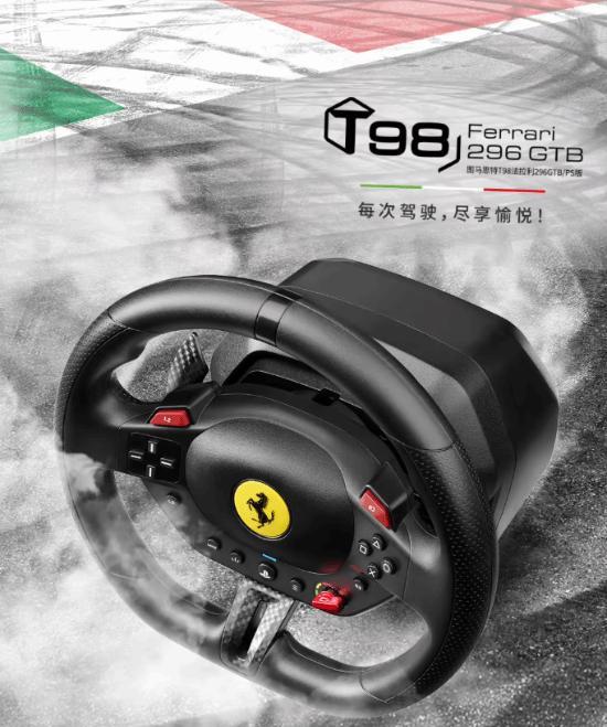 游戏配件厂商图马思特今日发布了一款T98 Ferrari 296 GTB游戏方向盘,定价799元,9月17日0点发售。 该配件7:10复刻法拉利方向盘,manettino拨盘支持三档灵敏度切换,还支持Bungee cord方向盘自动回正,配套踏板+桌面夹具配件。 据悉,该方向盘即插即用,获得PlayStation和法拉利官方授权,适合所有类型的游戏(GT、F1、Trucking、Farming、拉力赛、街机赛车等),PS4、PS5、PC都能用,未来还有支持Xbox的版本。