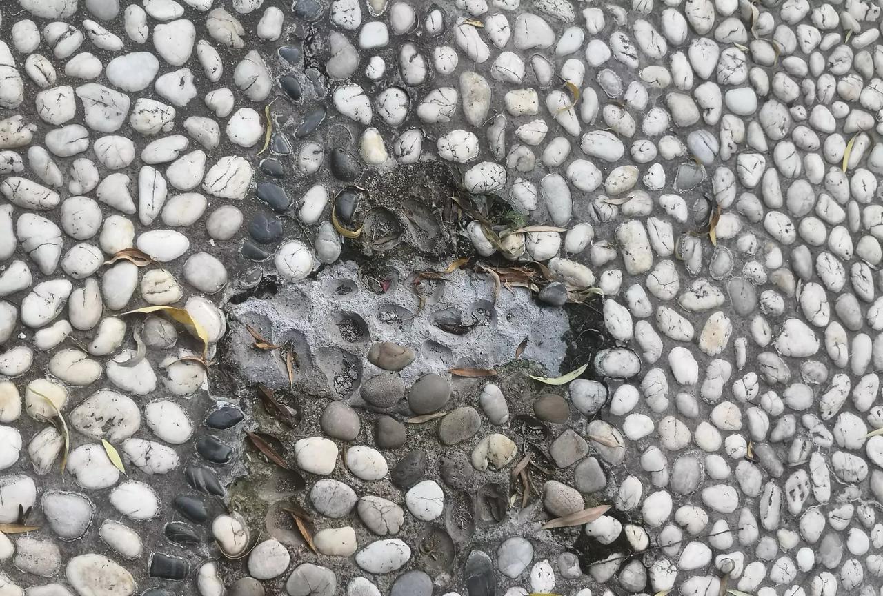 #秋日生活打卡季# 花园里或者公园里,都有一些用彩色鹅卵石铺就的小图案,给公园添色不少。 但也有很不协调的一幕出现,那就是很美的鹅卵石不知被谁抠掉了,很美的图案也就掉色不少,图案不完整了。