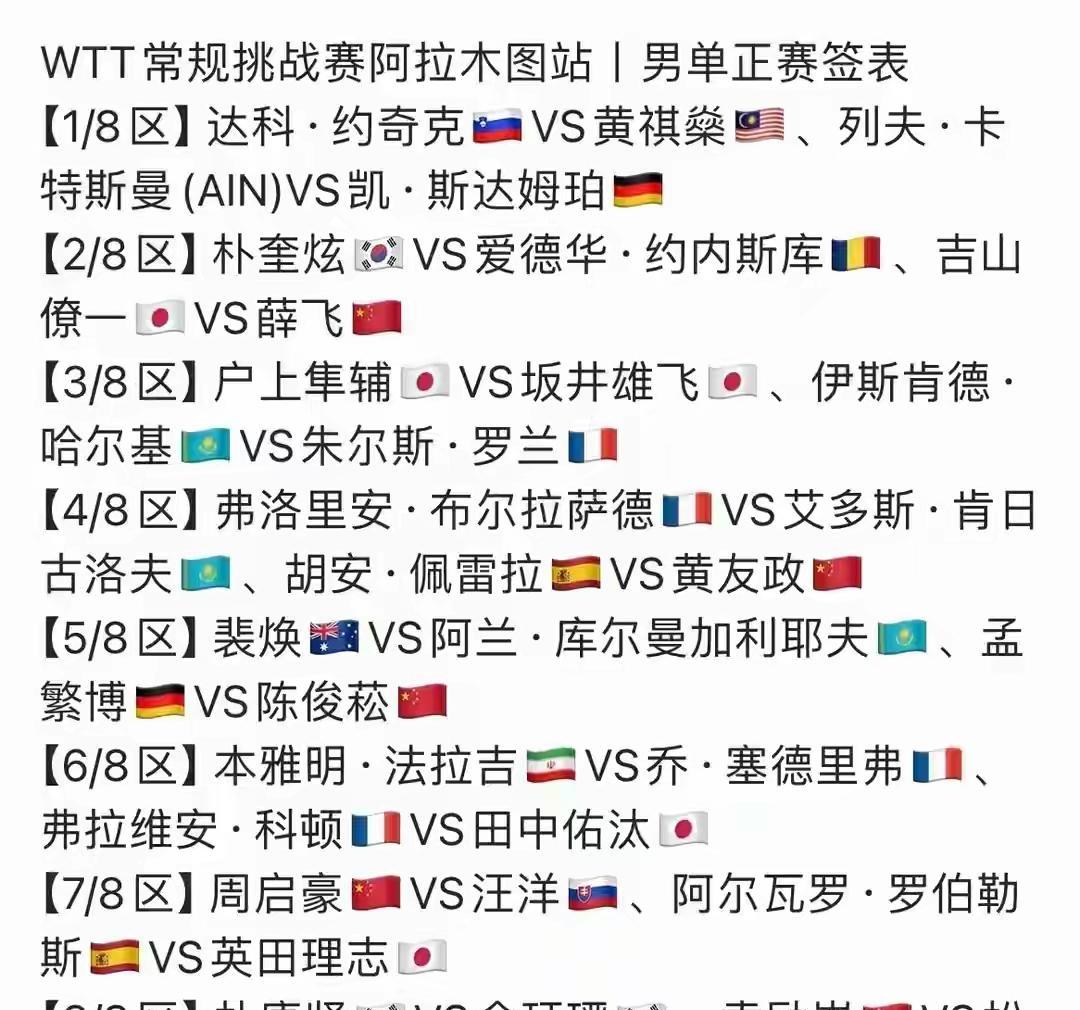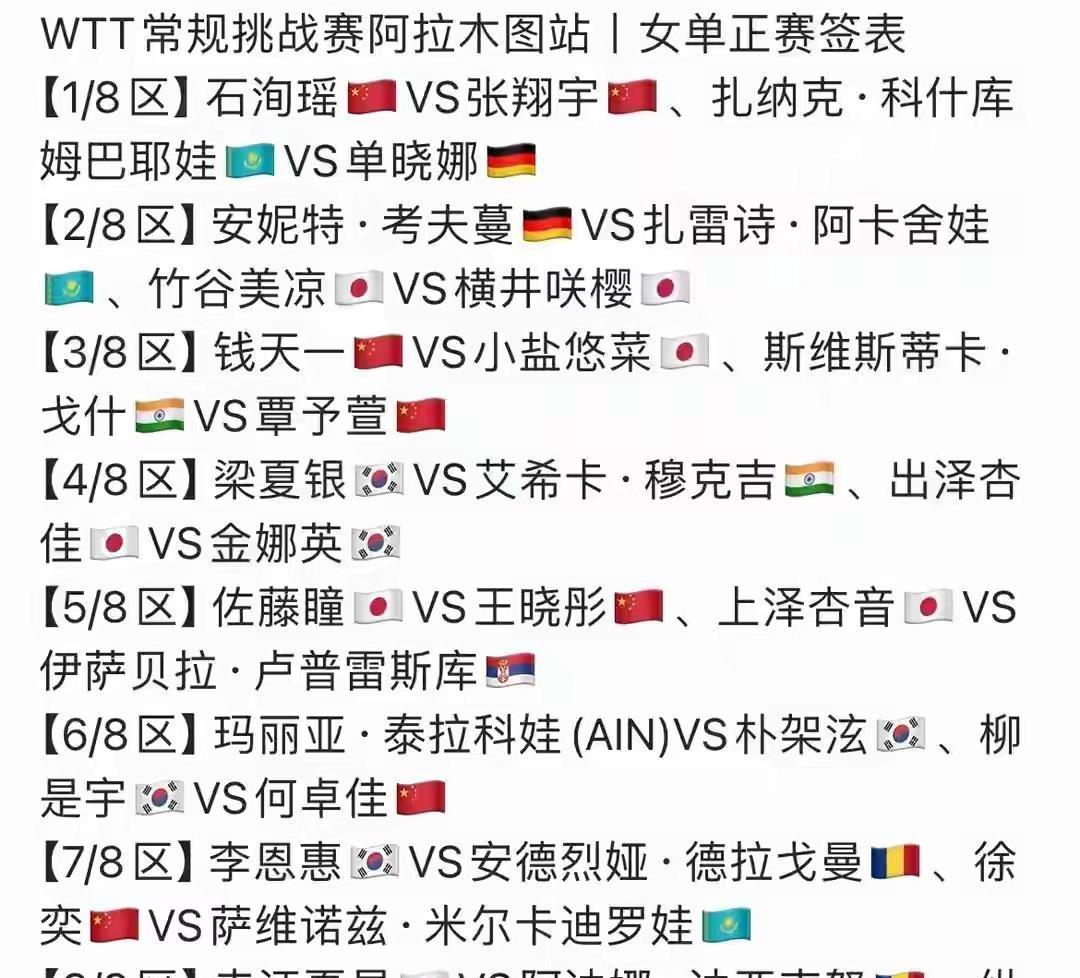 WTT常规挑战赛阿拉木图站2025(9.2-7):首日开门红,男女单各两位国乒预赛选手(陈俊菘、袁励岑、徐奕、张翔宇),晋级;附录选手单打签位。男单温瑞博因伤未能参赛。#2025wtt#