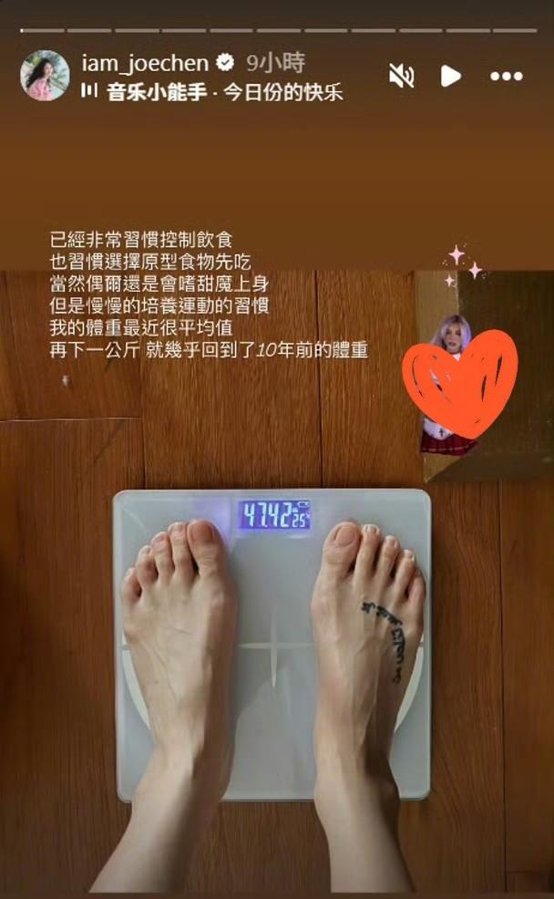 陈乔恩大方公开自己的体重,还开心表示自己的体重快回到十年前了,陈乔恩的官方身高是165,现在晒出来的体重是94斤,这样的身高体重现实中会很瘦。 陈乔恩是一个吃货,爱吃也能吃,经常能看到她晒各种美食,而且已经46岁的她,在新陈代谢变慢的情况下,还能一直维持好身材,可见是下了不少功夫。 陈乔恩年后还苦恼,因为过年期间放开吃长了5公斤,但她很快就调整过来了,不得不佩服明星对身材的管控能力,不过他们很多有营养师,而且对自己也很“狠”,一般人还是很难做到的。