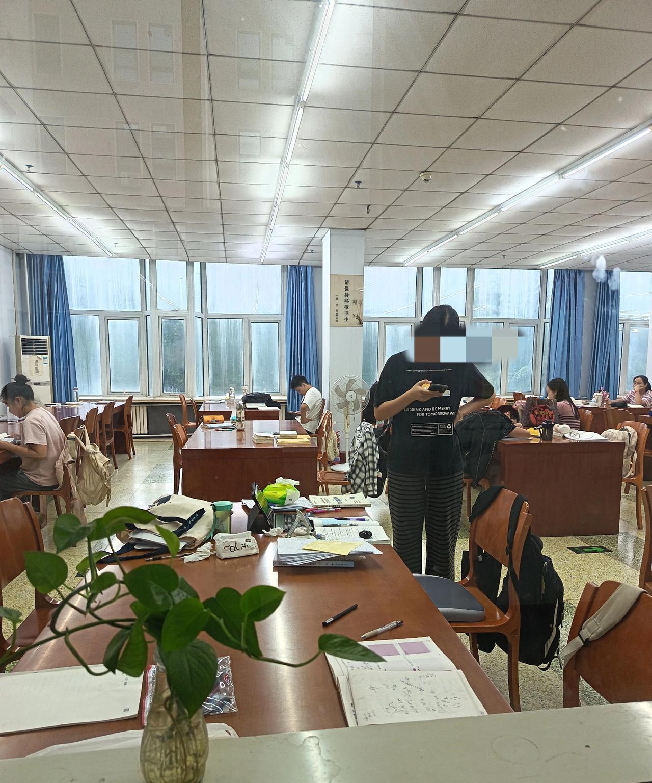 这就是暑假期间被顶上热搜的河南图书馆,因为家长凌晨四点半排队给孩子抢自习室而被热议 。 有个家长说,为了给孩子抢个自习室的座位,很多家长,甚至爷爷奶奶凌晨三四点就起来给孩子排队。 为了节省时间,让孩子多学一点,中午还要给孩子点外卖送到孩子手里。弄得比上学时还慌张紧张。 有的孩子一坐就是一上午,饭不吃,厕所也不去,河南孩子太卷了。 我就不懂了,在自己家不能学习吗?想学习哪里都可以呀。 有人说,为了省空调费。有人说图书馆有氛围,学习效率高。 为了实地考察一下河南图书馆到底有多一座难求,我专门去看了一下。 可能因为开学了,外面没有了排队的人,自习室的座位也比较宽松。 倒是有很多大学生模样的人在那里敲电脑、看书,也有玩手机的,还有趴在桌子上睡觉的。 什么关键的中国人的一生,每一年都很关键,甚至连死后的墓地选择位置都很关键。 很多焦虑啊,都是别有用心的人散布传播的。 很多事情啊,都是纯粹的自我感动。 别信,保持好自己的节奏,该干嘛干嘛。