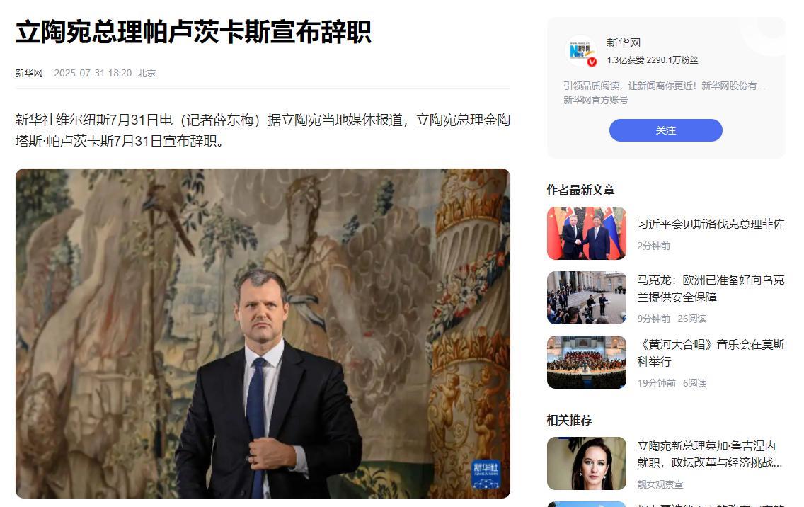 立陶宛总理八个月就垮台!不得不承认:对华政策犯大错才拖垮经济,得罪中国的苦果,终于尝到了。 谁能想到,立陶宛总理帕卢茨卡斯上任不到八个月就卷铺盖走了,成了本国最短命总理之一! 说是辞职,其实是被内外压力逼得跑路 —— 腐败缠身、经济快崩、老百姓骂声一片,连总统都放话“辞职才对”。 这烂摊子咋来的?还不是他们自己作死,非要跟中国对着干,把国家拖进火坑! 这伙人不光跟俄罗斯硬刚,当 “反俄先锋”:给乌克兰送军援、派雇佣兵,还封俄罗斯运输线。 俄罗斯直接断了他们的能源,以前41%能源靠俄,现在一下没了! 政府只能花三倍价钱买美国天然气,结果电价、暖气费飙上天,工厂停工,老百姓连面包都快买不起,这不是自找罪受? 更过分的是对华踩红线!帕卢茨卡斯上台时喊着 “修对华关系”,转头就让台湾设 “代表处”,一个中国原则是底线,他们偏要装傻挑衅! 咱中国向来你敬我一尺我敬你一丈,碰底线肯定反制 —— 这是护自己利益,天经地义! 反制一到,立陶宛经济立马垮了。对华贸易从峰值跌 90%,2024 年就剩 2.24 亿美元,还倒贴 20 亿逆差! 1300 多家企业倒闭,6 万人失业,快占全国五分之一,激光器、木材这些当家产业全瘫了,港口货堆着烂,农民倒牛奶 —— 这苦日子是他们自找的! 有人说他是被腐败搞垮的,确实,他以前滥用职权、骗贷款,亲属还套欧盟钱,但这些都是表面,真正毁国家的是他们拿国运赌外交! 走投无路找欧美帮忙,欧盟自顾不暇,美国只说空话不给钱。之前他们还撕了跟中国的港口协议,现在想回头求中国,谁信?信誉早败光了! 现在帕卢茨卡斯拍屁股走人,留下政治乱、经济崩的烂摊子,投资者全跑了,为了所谓 “价值观” 不管老百姓,落这下场纯属活该! 说到底,立陶宛高估自己、看错西方,还低估中国护主权的决心。 中国不惹事但不怕事,谁碰底线必付出代价! 这教训摆着,想跟中国耍小聪明的国家可得看清 —— 抱西方大腿没用,得罪中国的苦果,可不是谁都扛得住!