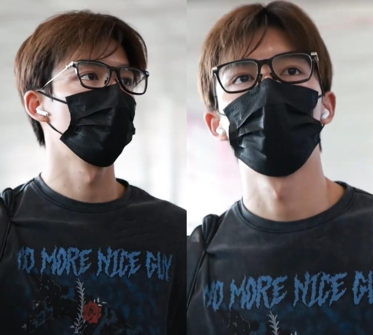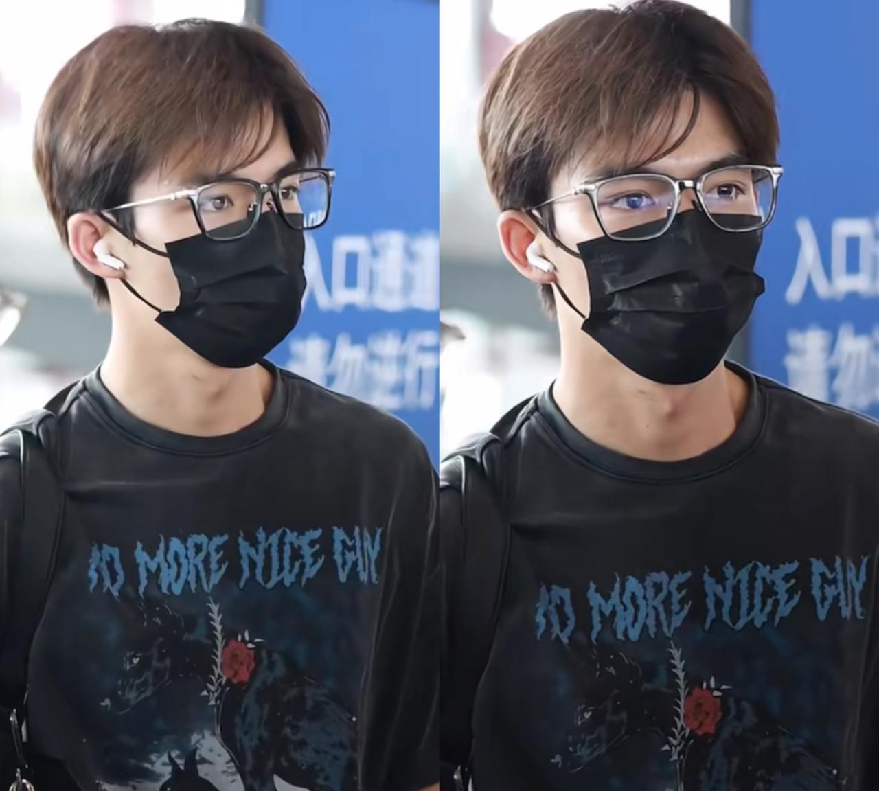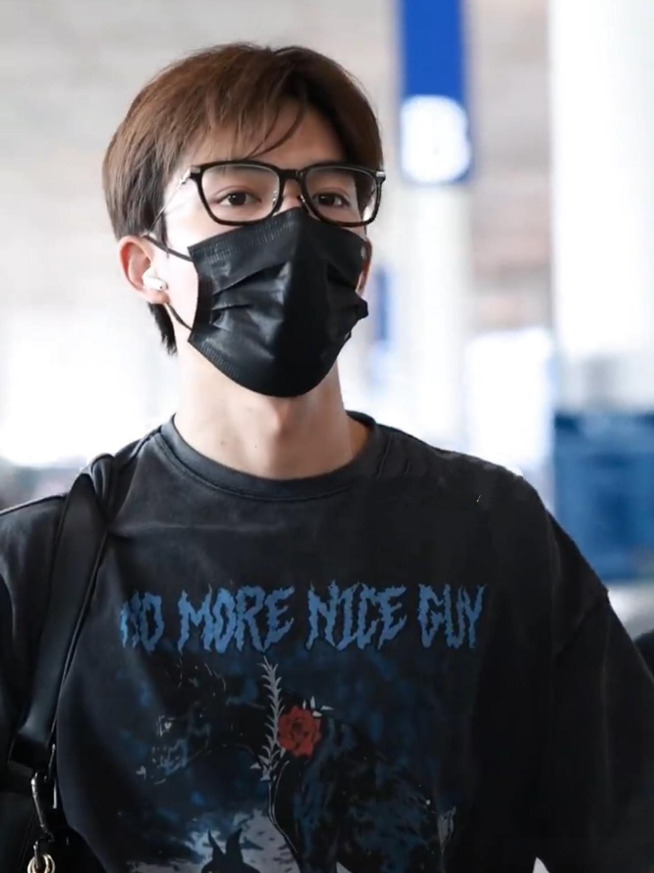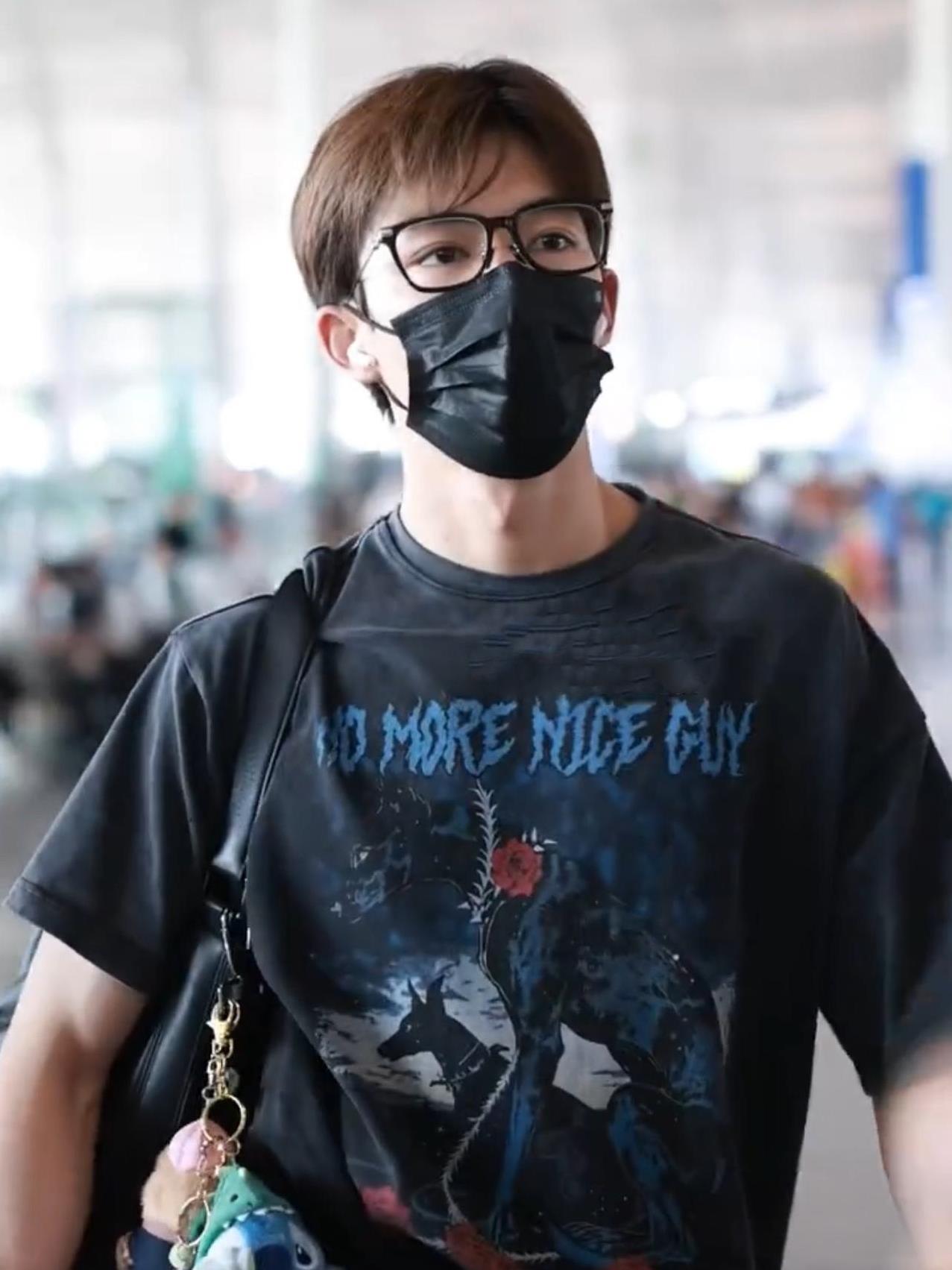 王星越9.4机场穿搭,T恤配个性牛仔裤,很帅气的一套服装,没想到包包上挂了好多娃娃,王星越也是紧跟当下潮流,一点都不落下。 戴眼镜的王星越好斯文,今日帅得有些过分了!