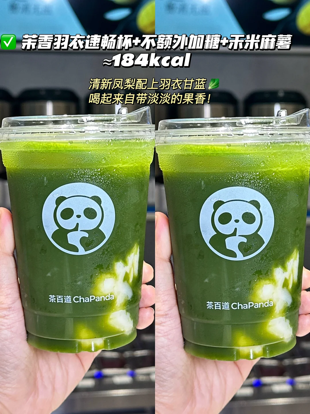 3️⃣茉香羽衣速畅杯+不额外加糖+禾米麻薯+少冰≈184kcal