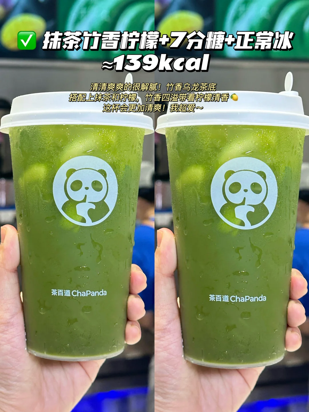 2️⃣抹茶竹香柠檬+7分糖+正常冰≈139kcal