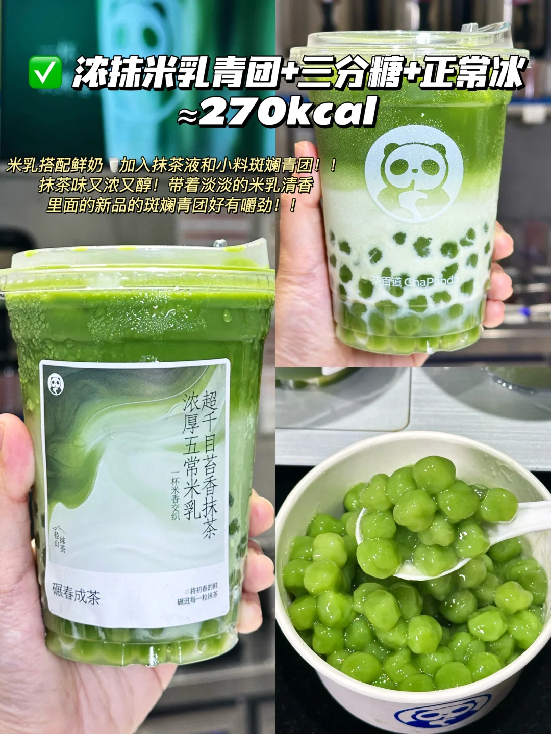 1️⃣浓抹米乳青团+三分糖+正常冰≈270kcal