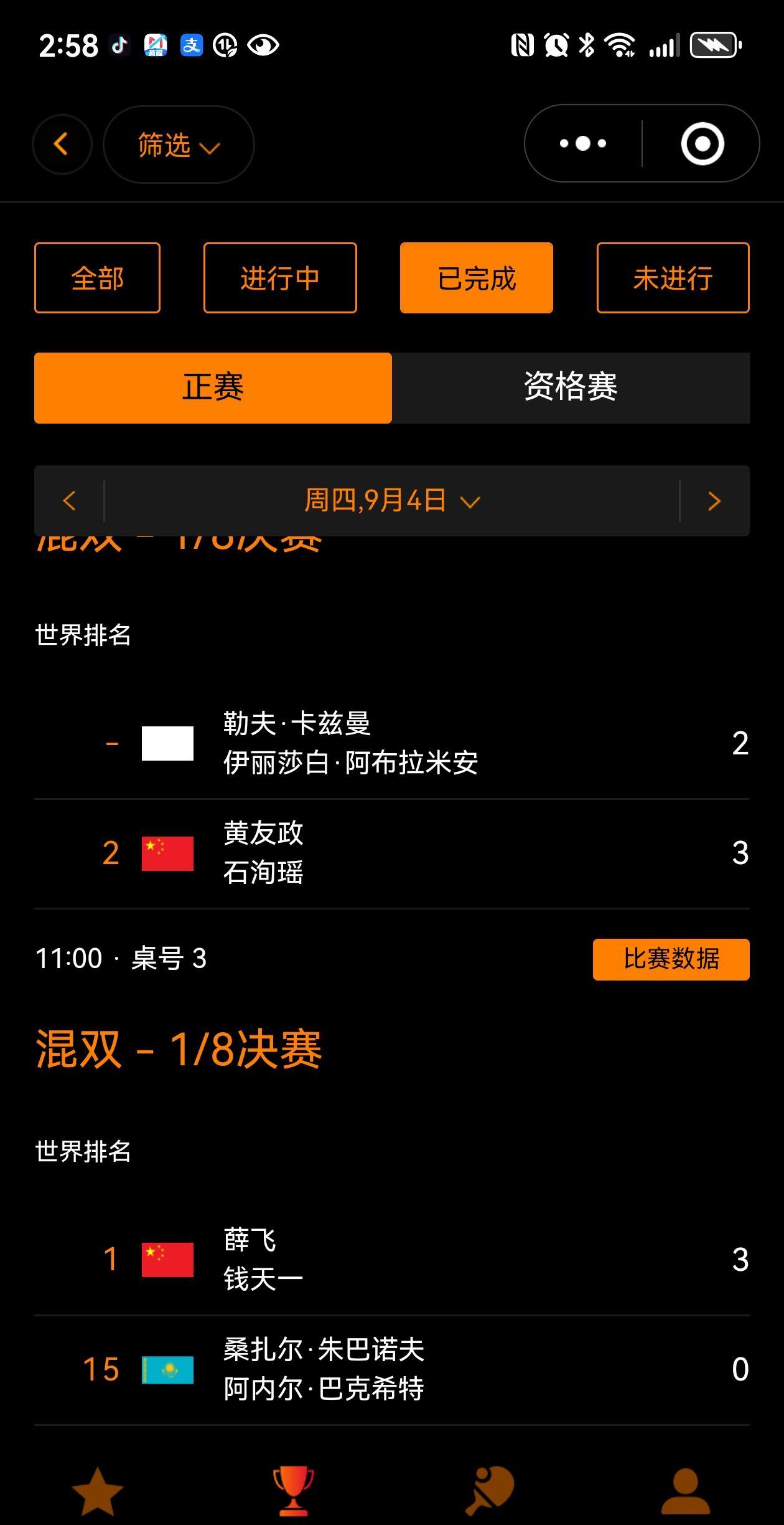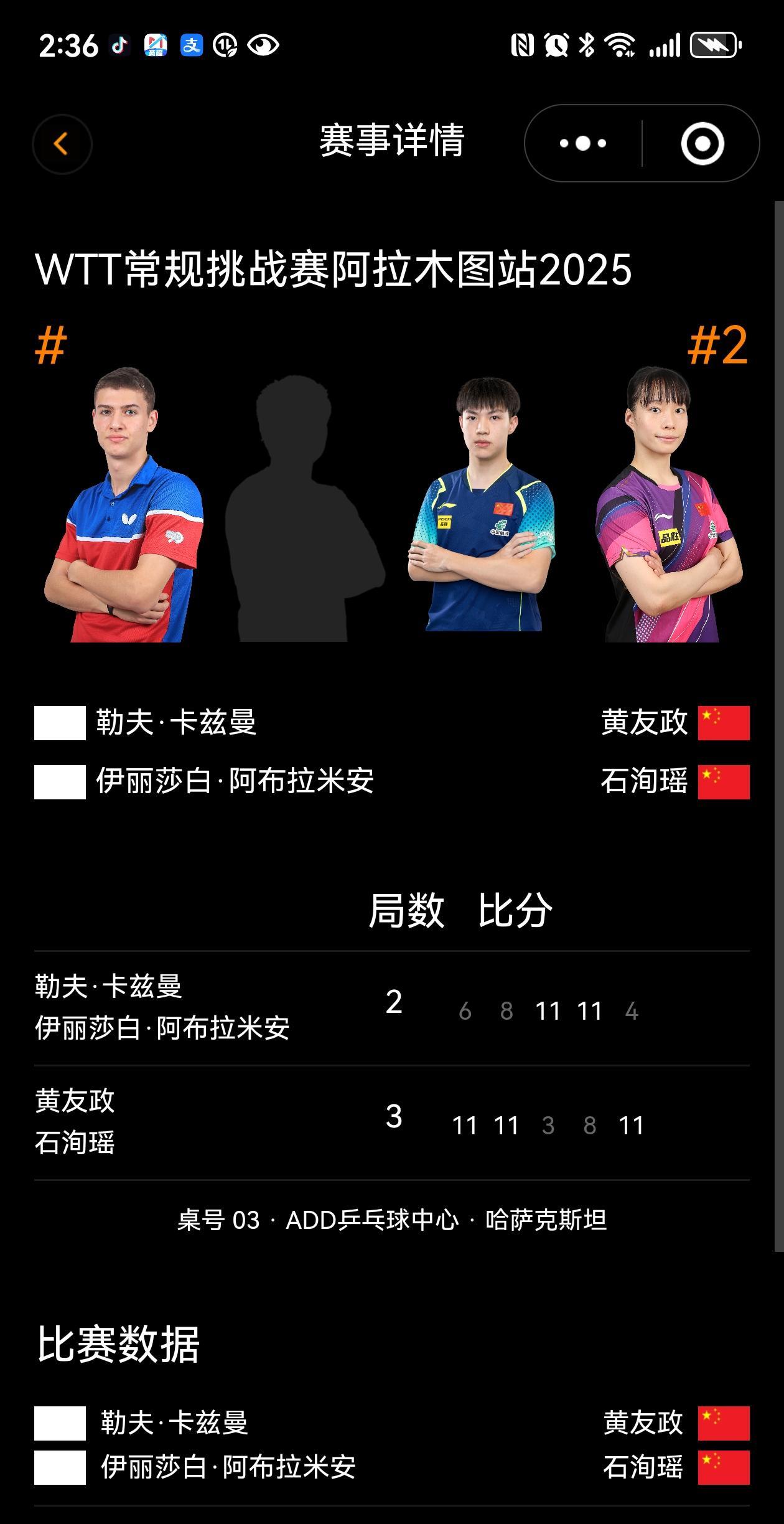 WTT常挑阿拉木图站2025(9.2-7),9.4午场,正赛第一天,开门红:混双