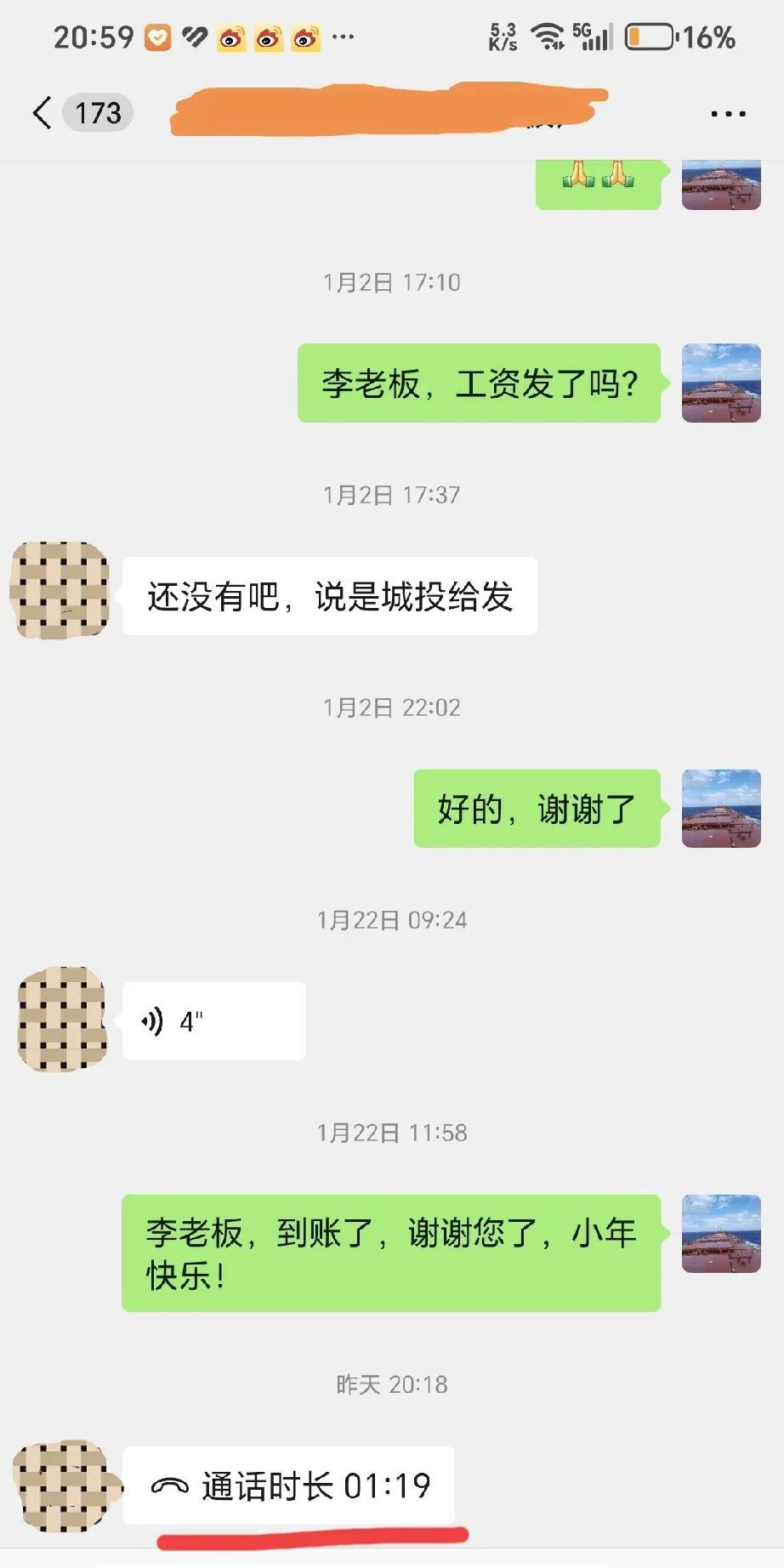 下船那天发了个朋友圈,说下船了,今晚(九月二号)就能到家。被去年打零工的李老板看