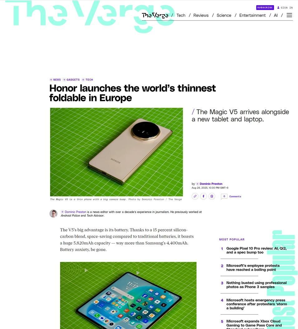 刚刚看到荣耀CEO李健分享了,荣耀MagicV5最近加入到欧洲市场的消息,据说