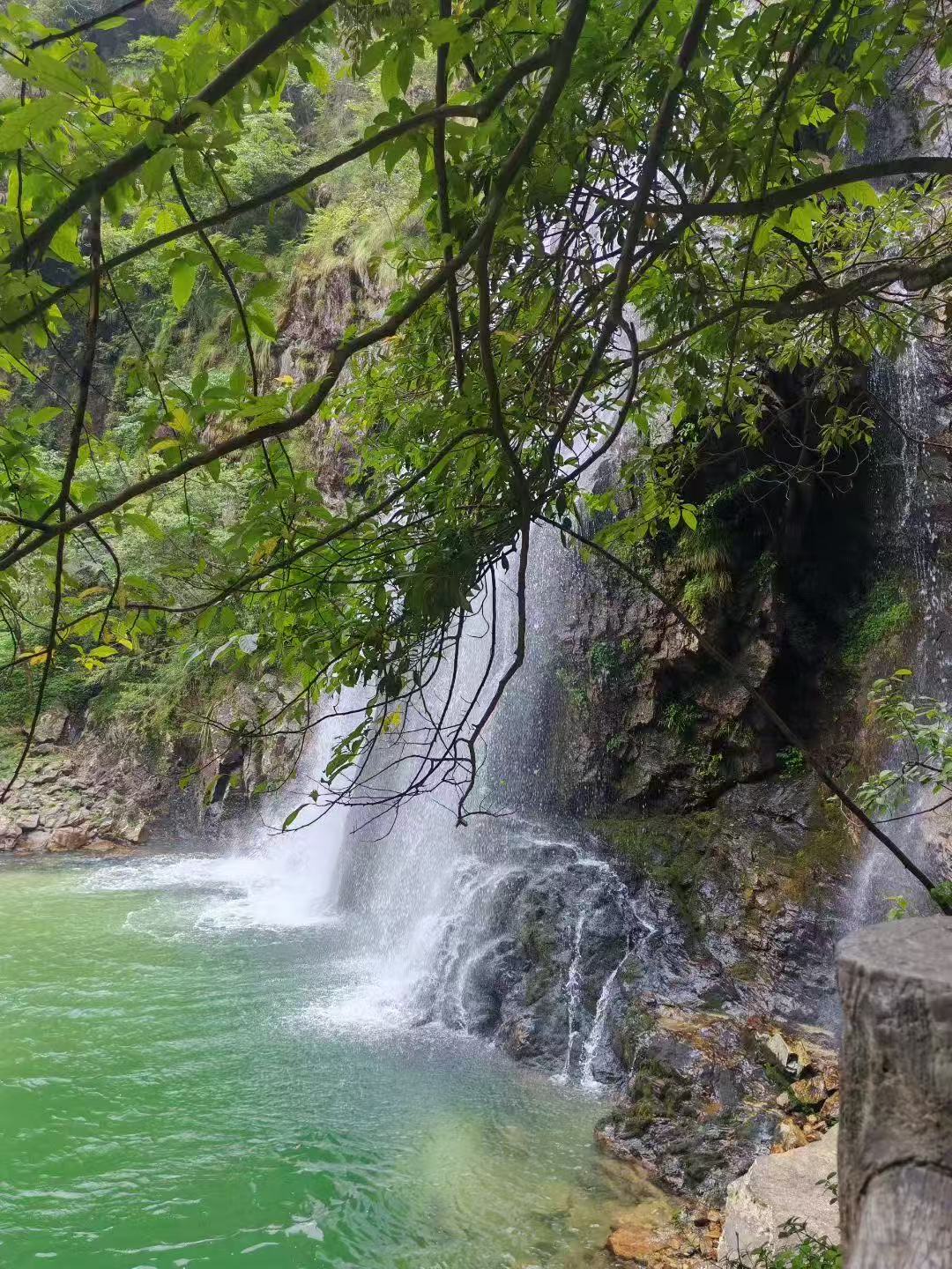 ✅卧龙潭:潭水蓝绿如宝石,弧形堤坝造就月牙飞瀑,下午顺光拍摄效果绝佳,新增的竹筏体验可拍出水墨意境照。