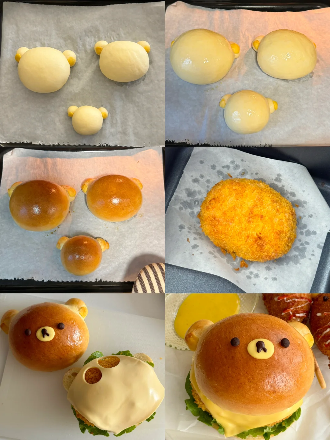 2️⃣发酵好的面团按压排气,整出轻松熊的造型,送入烤箱35度发酵半小时