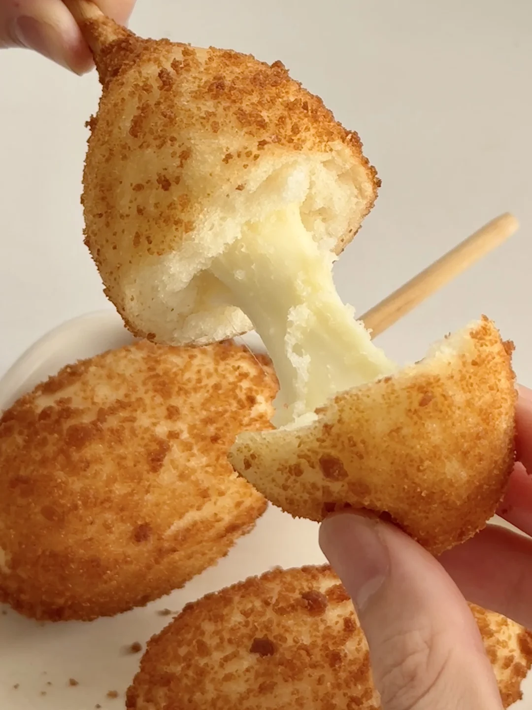 芝士味的里面是满满的马苏里拉干酪🧀,加热后奶香浓郁,咬一口超长拉丝~
