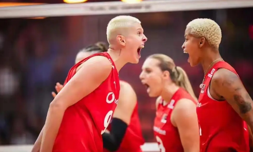 土耳其女排阵容中有两个形似男人的球员,一个是从古巴归化的26岁接应瓦尔加斯,一个是外号“表弟”的25岁主攻卡拉库尔特,两人又高又壮,染着相同的白发,在球场上很显眼。