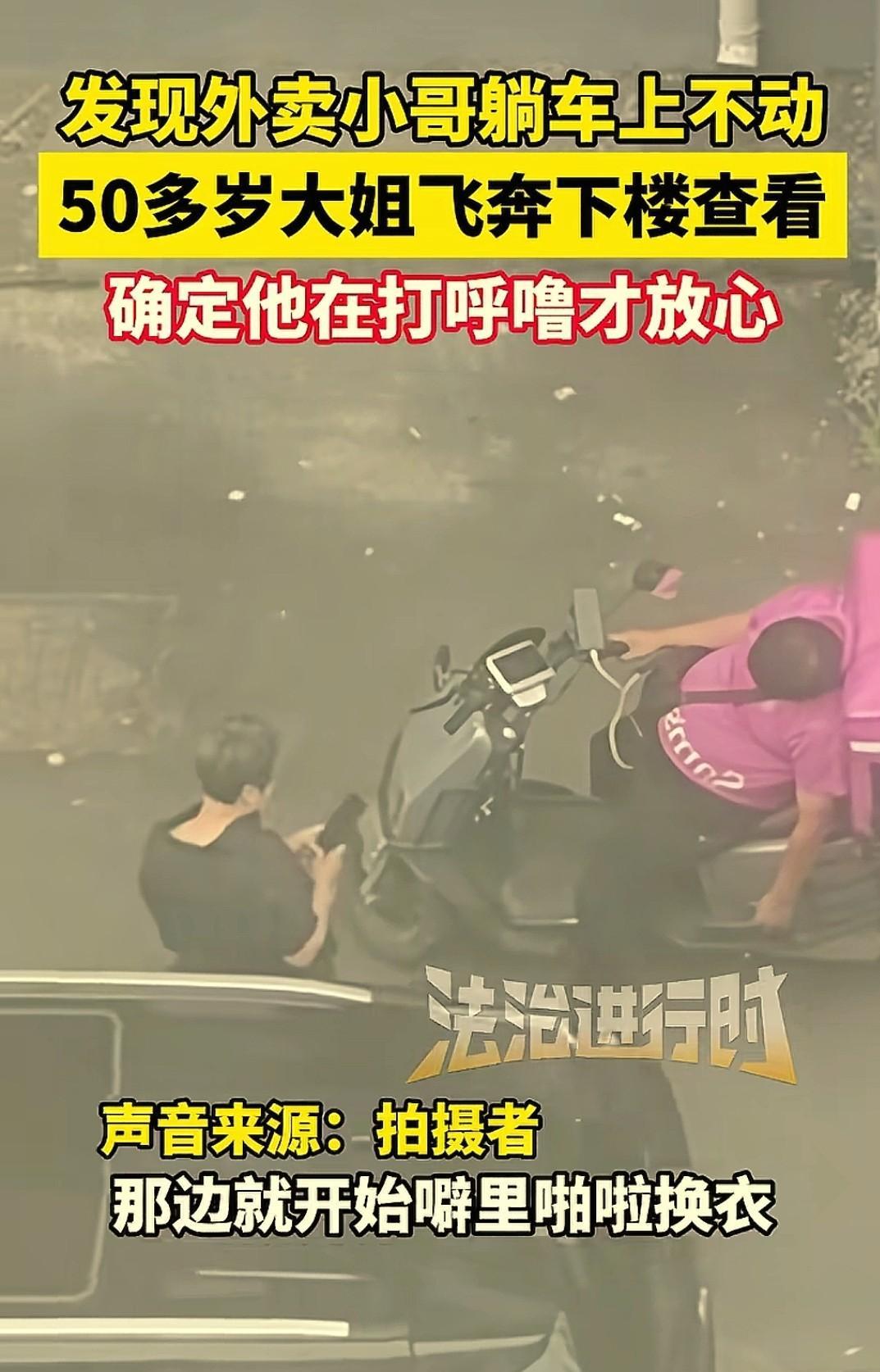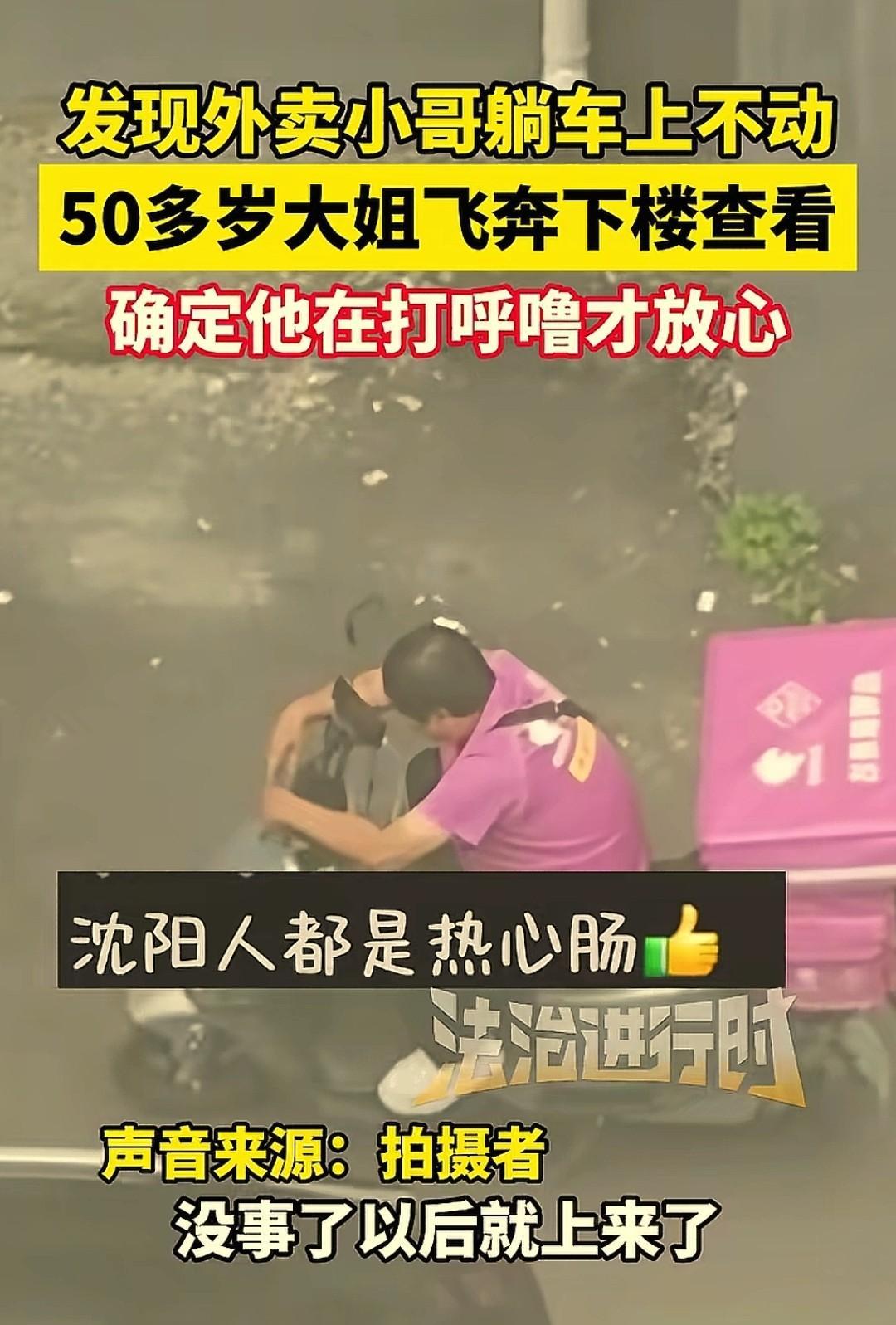 这大姐真是热心肠!辽宁沈阳,50多岁大姐站在自家的阳台向下望,突然看到一位外卖小哥,歪着头靠在电动车上,一动不动。大姐心里“咯噔”一下,越想越觉得不对劲,飞快冲下楼查看,等小哥醒了说明情况,好在是虚惊一场。网友:这种事宁可误判也别是真的。 根据法治进行时报道,这件暖心的事就发生在9月4日。 当时大姐急切的抓起一件外套,给家人扔下一句:“我出去看看”,就从6楼飞奔下去。 家人反应过来时,顺着阳台就看到大姐拿着电话站在小哥身边。大姐满头大汗,喘着粗气,她本想叫醒对方,却有些犹豫,想报 警,又怕描述不清情况。思来想去,她决定先在一旁默默观察一会儿,心里却急得不行。 等了大概有不到十分钟,小哥感觉到了身边有人,突然睁开眼,有些迷茫的看着大姐,还有些愣神。 还没等他开口,大姐就问:“你在这没事吧?”看到一脸担忧的大姐,小哥这才明白过来,心里一暖,连忙解释:“我没事,就是太困了睡一会。” 看到小哥平安无事,大姐还是不太放心,又跟着小哥聊了几句,确认真的没事后,才转头离开,缓缓走回了家。 小哥估计自己都没想到,不过是睡了会觉,就有人担心他,还闹出了乌龙,估计心里也特别感动。 大姐的家人见她回来,也跟着送了口气,还把这件事记录下来发到了网上。很多人也分享起了发生在自己身上的故事。 有人说: 有次我晚上没睡好,冬天冷我就进商场休息区坐着,商场里暖和,坐着坐着就睡着了。冬天戴头盔又有面罩,旁边做的大姨听不到我呼吸,轻推了我两下,穿的厚也没啥感觉,大姨可能着急了,隔着头盔给了我一下,打的我脑瓜子嗡一下子,不过事后我特别感谢人家。 也有人说: 有一次,晚上九点多我和家人开电动车去送货,路上下着毛毛雨,经过一个人比较少的绿道,就看到一个外卖 车停在那里,那个外卖员趴在车上睡觉,电动车没关电。等我们一个小时回来经过的时候他还在那里!我老公就过去叫他,醒过来,他才说马上回家,刚才有点累想着下雨就在那里树木休息一下就睡着了,也不知道叫醒他是错是对。 大姐的热心肠看似虚惊一场,可正是这种“多看一眼”,“多管闲事”的心态,让人与人之间有了温情有了关心,让我们为大姐点赞。 一个人的人品和素质平时看不出来,一旦别人需要帮助,这样的人都不怕麻烦挺身而出,并且很多被帮助的人除了心理感激,下次遇到别人有困难也会感同身受,会把这份热心肠传递下去。