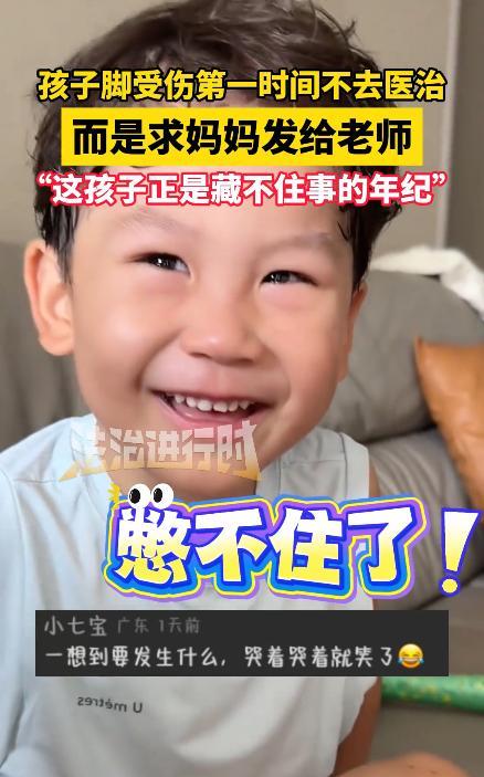 “笑不活了!”9月1日,江苏,一男孩在家里玩耍时,不慎将脚弄破了,可孩子的第一反应不是去医院,而是让妈妈拍照发给老师请假!在听到妈妈给自己请了2天假后,男孩瞬间就忍不住笑起来了。网友:这孩子正是藏不住事的年纪! 小孩子都是比较调皮的,在家里上蹿下跳的十分活泼,但是稍有不慎就会弄伤自己,因此家长在看孩子的时候,一定不能让孩子脱离视线,在发现危险举动后要及时制止。 这天,男孩已经开学了,妈妈本打算收拾好后就送他去上幼儿园,不料,男孩在玩耍时弄伤了脚,疼得他不敢走路,坐在沙发上哇哇大哭。 妈妈立马过来安慰孩子,没想到男孩并没有让妈妈带自己去医院治疗,最先想到的是给自己请假。 妈妈掏出手机拍了照片,然后发给了老师,表示要请两天假,男孩听到后,原本还在哇哇哭的他,瞬间就换上了笑容!给人一种阴谋得逞的感觉。 网友看后表示,小时候为了不上学也是什么办法都想过,现在回想起来感觉真好笑。 每当假期结束刚开学时,不少孩子都表现得心不在焉,十分抗拒去上学,还想继续待在家里玩耍,这个时候家长一定要及时做好孩子的心理工作,帮他们树立正确的观念,而不是帮他们“蒙混过关”。 信息来源:《男孩脚受伤第一时间发给老师 才开学又得请假两天了》山河视声