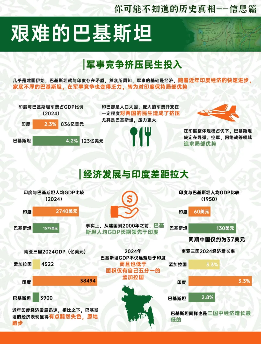 相对于 近年经济飞速发展的印度 其老对手——巴基斯坦 日子就过得没那么容易 反而还非常艰难 作为南亚第二大国家 目前的巴基斯坦 到底又在面临着 什么样的困难呢? 历史 世界历史 巴基斯坦 印度 巴铁 经济 信息图 图表 经济 地理印度与巴基斯坦,哪个更有好感? [PK]