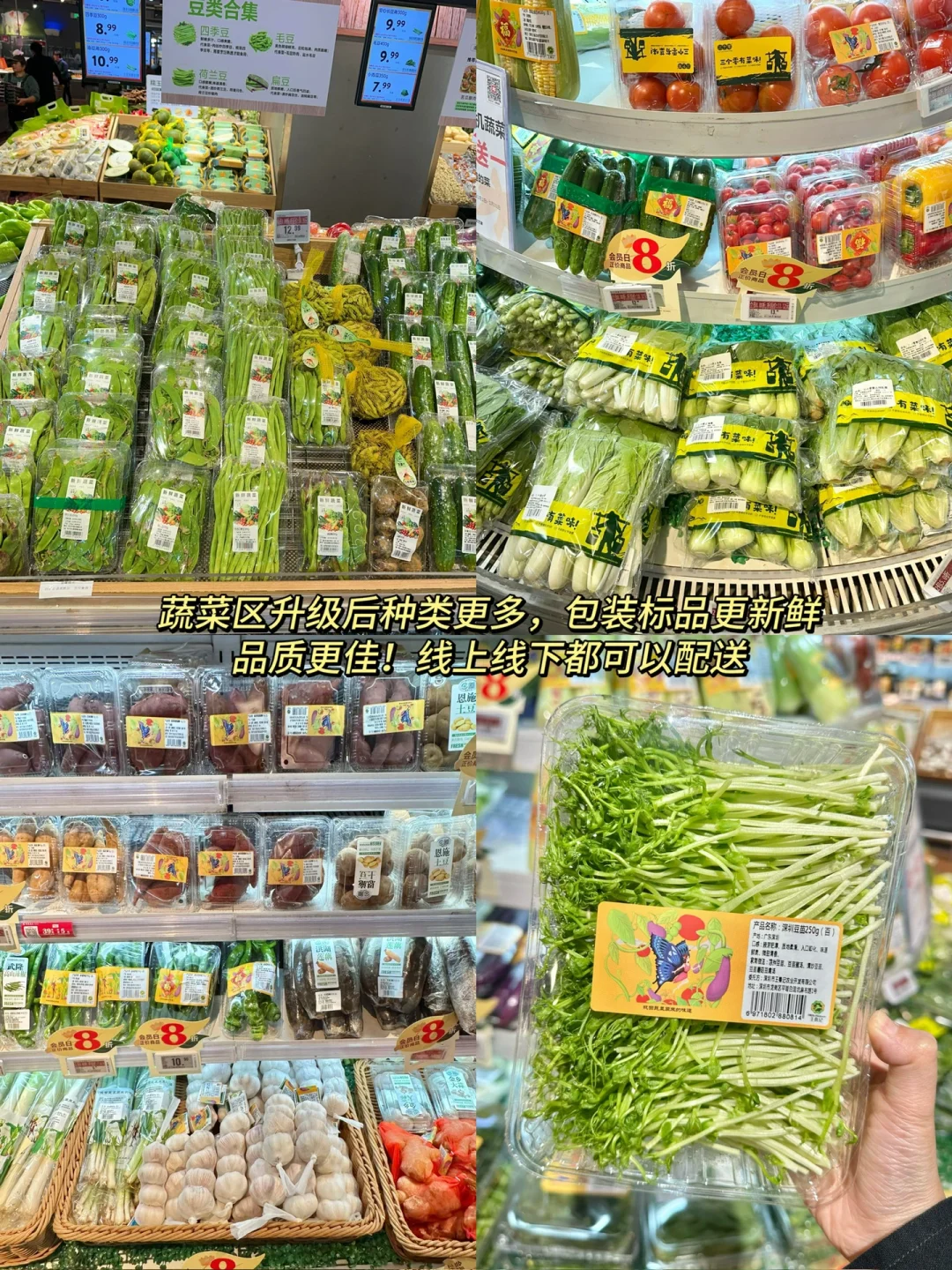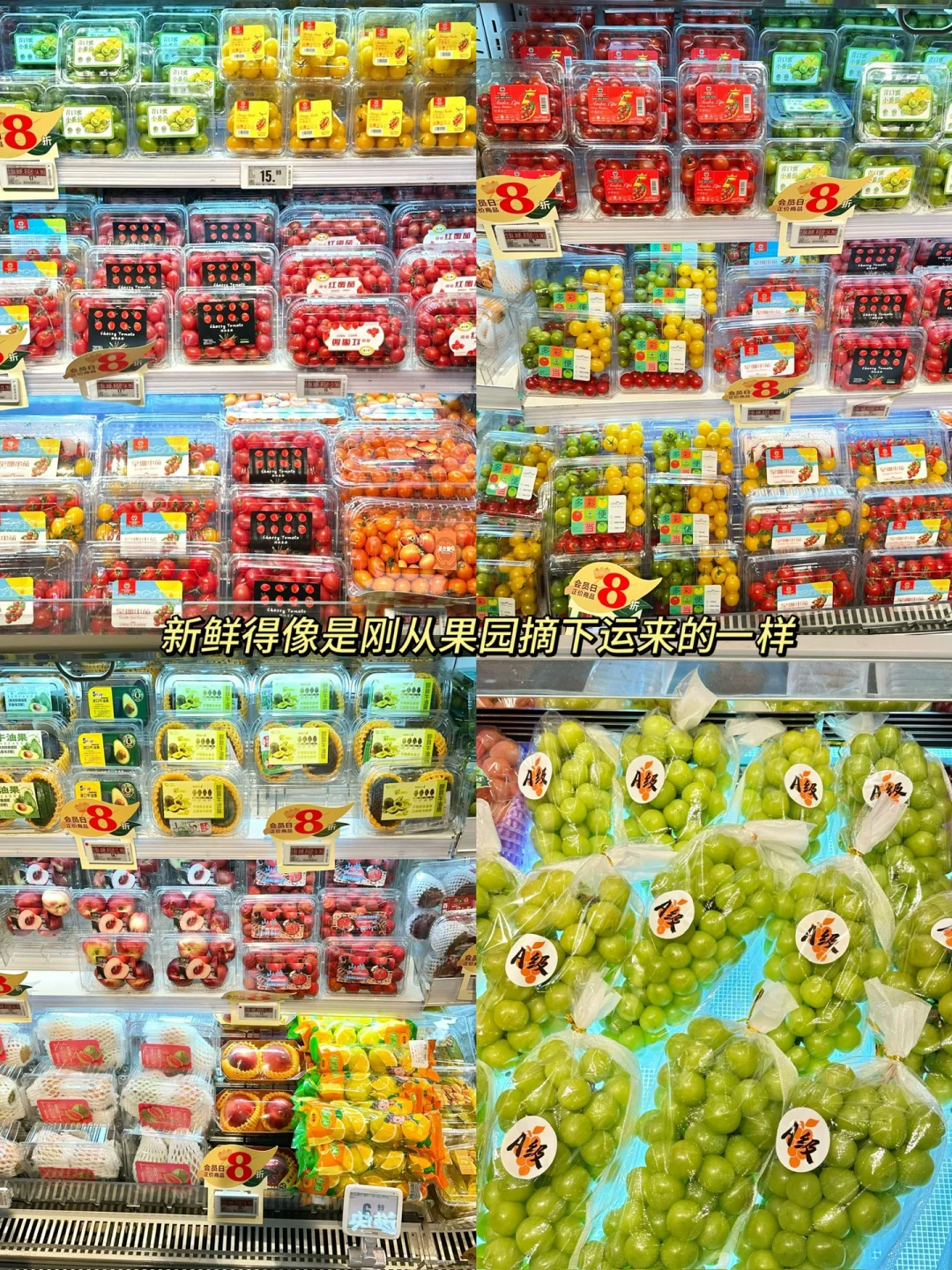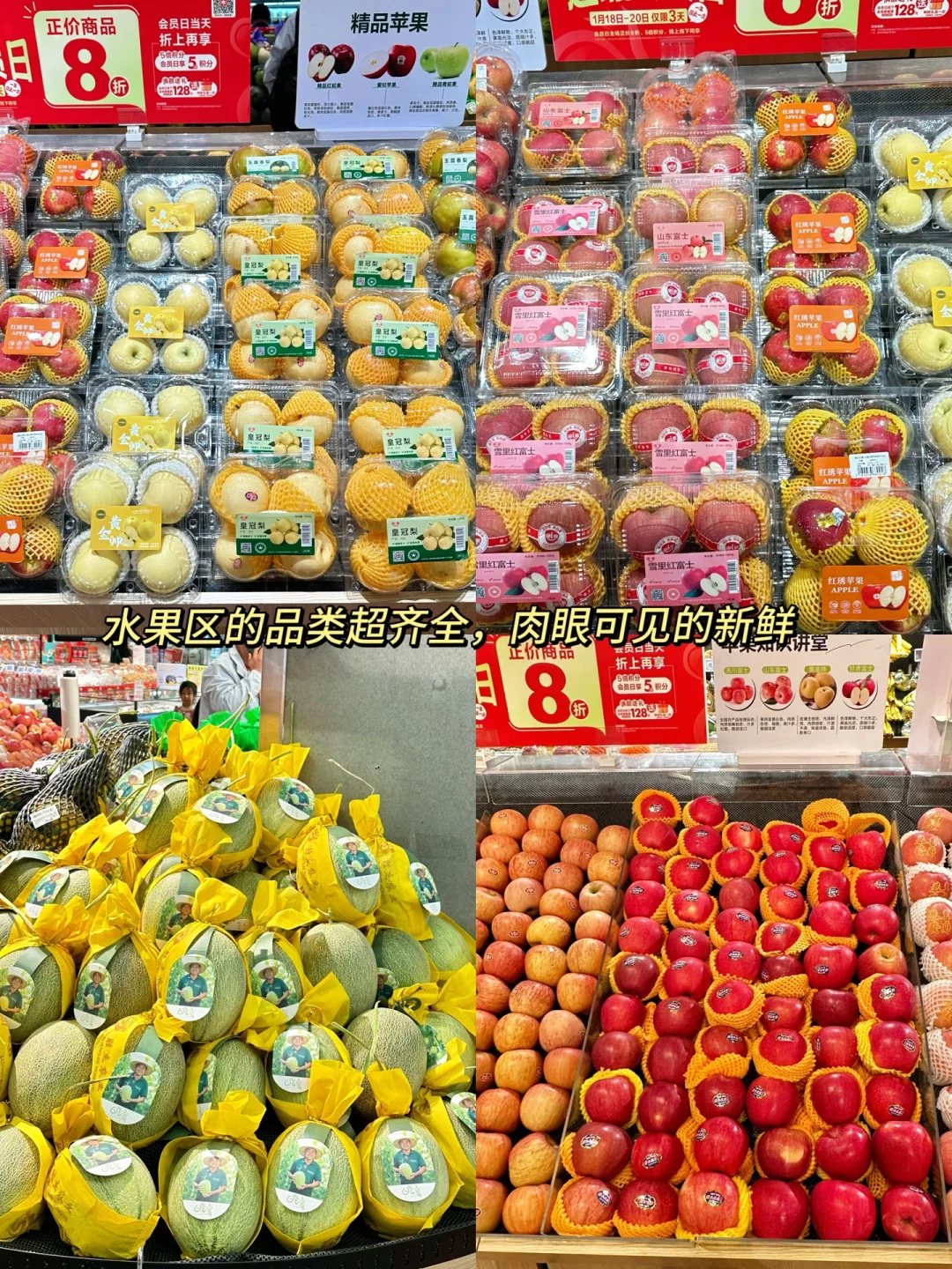 ✅水果区和蔬菜区品种多,常买的有机蔬菜、智利车厘子、丹东红颜草莓等品质也很能打!