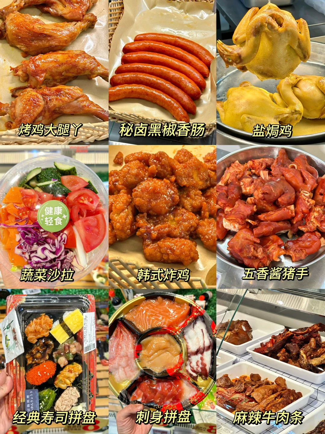 ✅熟食区:每次来华润万家必逛的熟食区!全国各地特色美食很多都有,吃货脑袋每次都忍不住要买好多!!像韩式炸鸡、🍣寿司拼盘、五香酱猪手、麻辣牛肉条、盐焗鸡、凉拌菜、麻辣鸭头、🐟炸鱼等都可以闭眼入,价格实惠又好吃!!