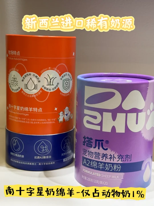 ✅喂了一段时间后,发现搭爪的A2绵羊奶粉,真的是幼宠和老年宠物的福音。它选的是新西兰黄金牧场稀有奶源,南十字星奶绵羊,产出的奶稀有(仅占动物奶1%)又营养,富含原生优质A2酪蛋白和天然原生乳钙,比常见的山羊奶、牛奶更出色 ,是小分子乳脂更易吸收💜,还有8倍乳铁蛋白~