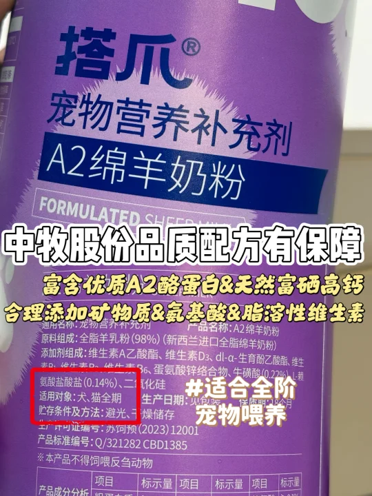 👀我家不甜之前就是体质差,肠胃还脆弱,我也是做足了功课才给它入手了这款搭爪的A2绵羊奶粉,最吸引我的不仅是它的配方,更是它是上市央企中牧股份出品 ,瞬间好感度拉满!!!👏中牧股份作为行业内的国家队,品质把控那叫一个严格,有它背书,给家里毛孩子吃就特别安心💕~