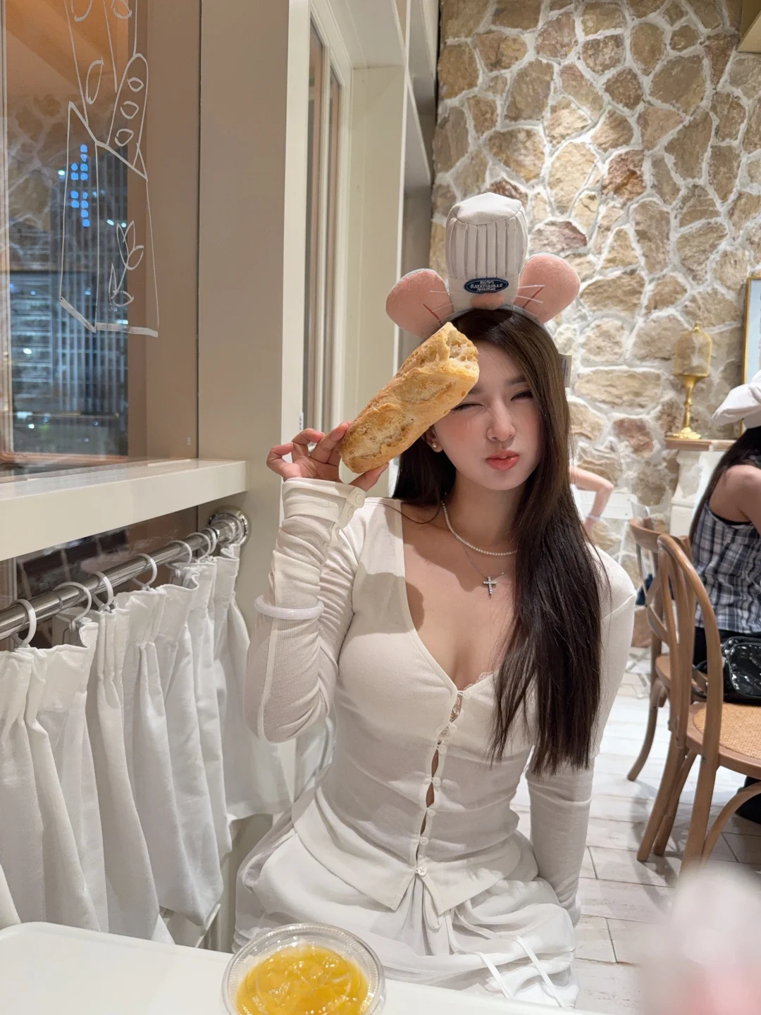 可爱面包店 可以喝咖啡,可以吃面包 98一个人 选一个饮品 一个面包,面包相对于来说还不错 有很多小道具 小帽子 diy的小饼干面包 店里光线蛮不错的 晚上去都可以出片囖~