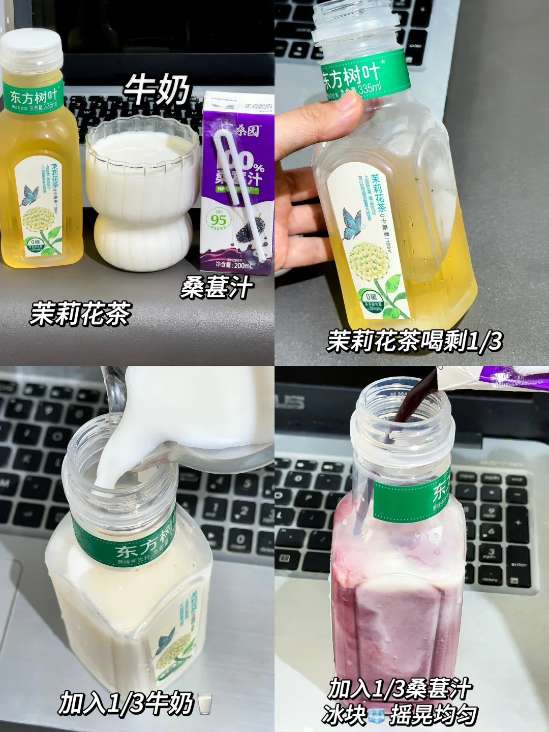 茉莉花茶➕纯牛奶➕桑葚汁=1:1:1