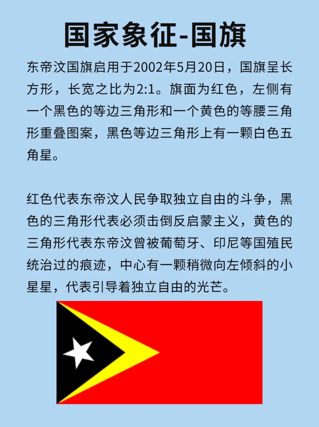 [气球R]东帝汶历史上长期被葡萄牙殖民,1975年独立后,遭印度尼西亚吞并。1999年8月30日,全民公投决定脱离印尼独立,2002年5月20日正式宣布独立。