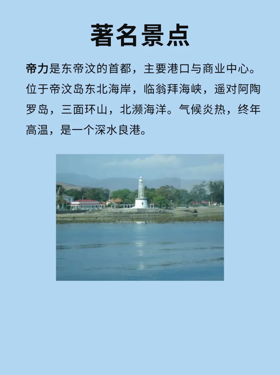 [打卡R]东帝汶民主共和国,简称东帝汶,是位于努沙登加拉群岛东端的岛国,包括帝汶岛东部和西部北海岸的欧库西地区以及附近的阿陶罗岛和东端的雅库岛。