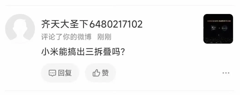 三折叠这种高利润的产品,不符合小米的价值观。小米公司永远不做超过5%利润的产品。雷总永远和大家交朋友。