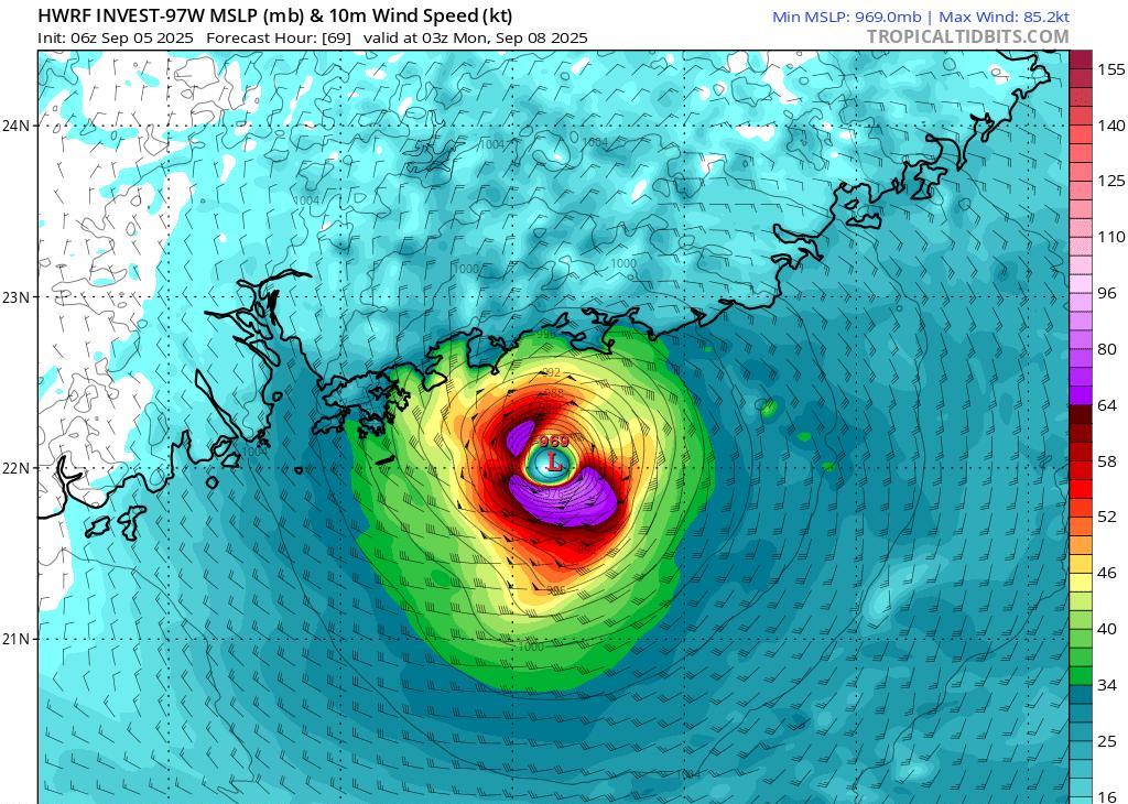 今年第16号台风“塔巴”即将生成,未来趋向广东广西 中央气象台于今晚将南海东部的热带扰动升格为热带低压,并发布路径预报,预计它将在9月6日发展为今年第16号台风“塔巴”,而后于9月8日登陆珠三角西部或粤西沿海,登陆强度可达强热带风暴级,登陆后趋向广西。 当前南海北部风切环境良好,海温较高,同时系统北侧流出条件好,总体利于加强或快速加强。个别数值模式认为有近岸爆发的可能性,但总体来看,这种可能性还是偏小的。 请珠三角、粤西、桂东等地的朋友留意台风动态,做好防范。