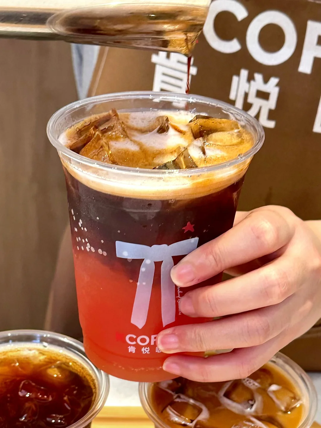 这次还有一款春季限定特调,午休火速去打卡测评了下[色色R]红颜草莓气泡美式·瑰夏,甄选瑰夏豆做的气泡咖啡真的好惊艳。。。入口是丹东九九红颜草莓🍓NFC果汁的酸甜果味,与瑰夏豆的花果芳香碰撞在一起,酸甜平衡的刚刚好