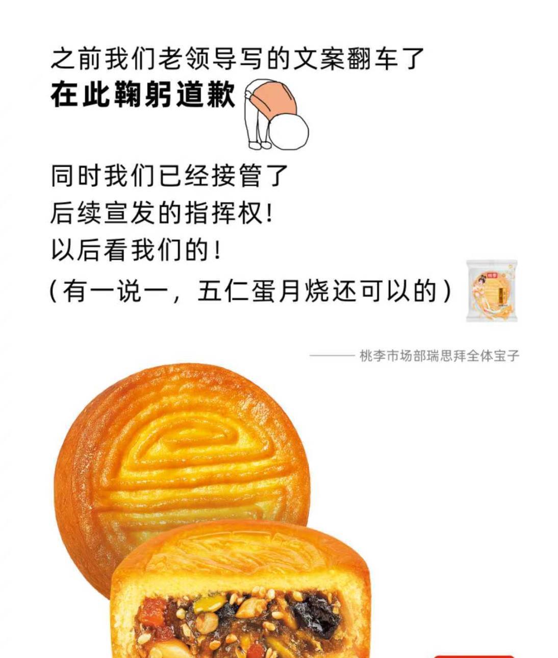 近日,桃李面包因一句广告语翻车了!中秋节快到了,桃李的新品——五仁口味“蛋月烧”月饼要做广告,据说领导在20条广告语中选中了这句:“有人说五仁不好吃,我们认为:那是因为你还年轻,还没饱尝过生活的毒打。” 领导一拍板,这条充满争议性的广告立马投放了。果不其然,广告火了!被针对的年轻消费者立马炸了!纷纷吐槽桃李品牌傲慢,买个月饼还要接受“爹味营销”。 黑红也是红,这应该就是领导想要的效果。毕竟有人骂你,总比没人理你强。 没想到,骂声大了点儿,桃李又扛不住了,自己下架了广告,新品也“缺货”暂时不卖了。这下又被年轻人认为是逃避责任。 桃李品牌只得二次道歉,宣布这个祸是领导闯的,锅由他背。后面品牌宣传由年轻人接管,又夹带私货宣传了下新品。 目前,这个“蛋月烧”又上架开卖了。 桃李面包近年来屡次陷入质量问题风波,醇面包菌落超标17倍,被消费者吐槽的比命还长的添加剂配料表等等。负面信息和激烈的市场竞争,导致桃李今年上半年净利润暴跌近30%,广告投入反而增加了40%。 业绩下滑,砸钱投广告,想要通过黑红的营销给产品带一波流量,冲一下销售额,可以理解。但是食品企业,最重要也是最根本的核心竞争力不应该是产品本身吗? 舍本逐末,这样的品牌之路怕是走不长远。