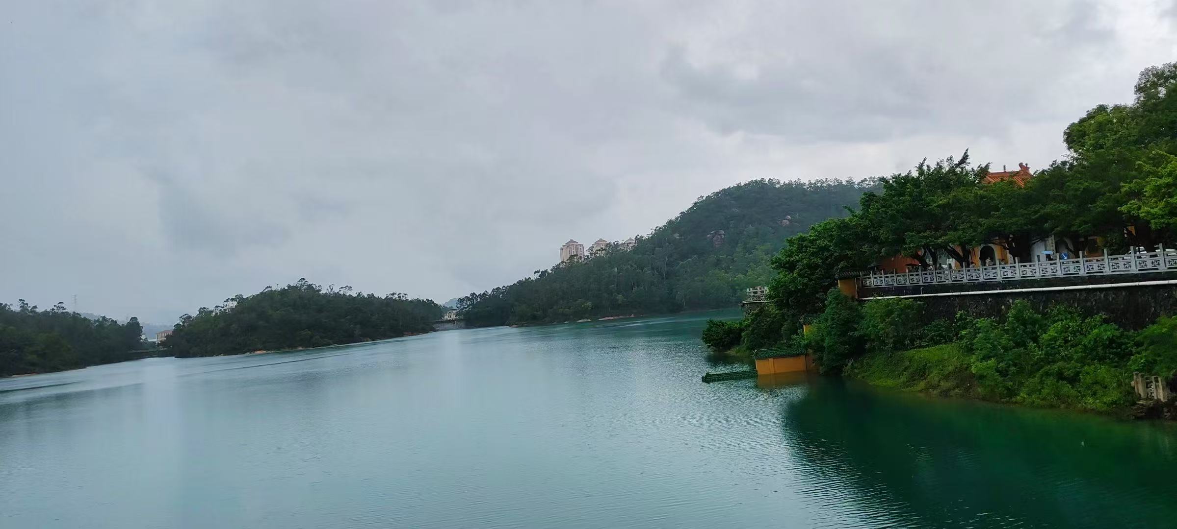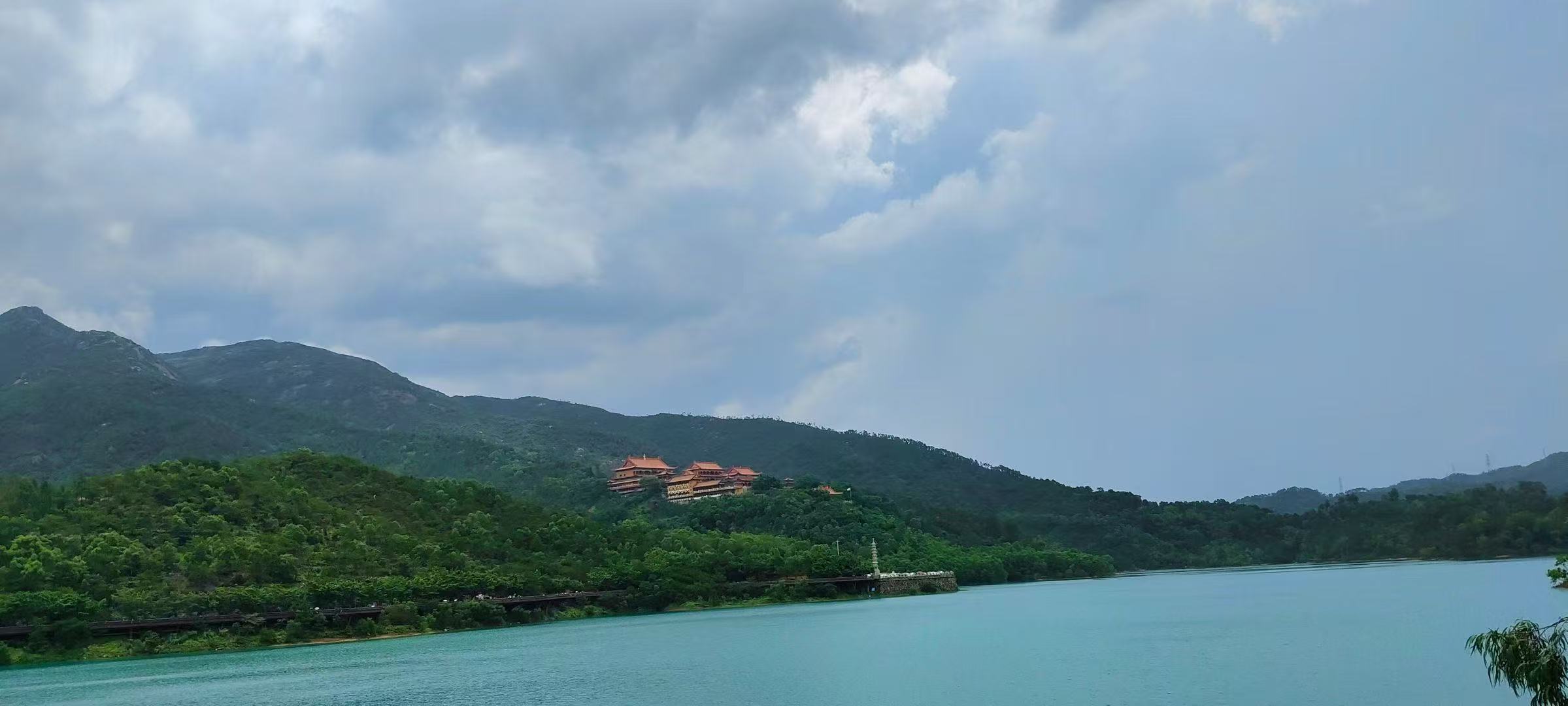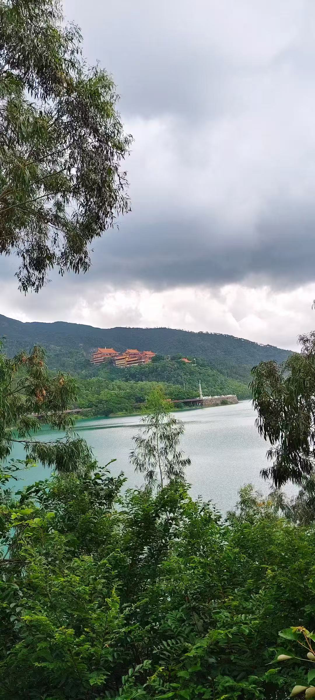 ✅登高观景台:沿石阶上行至高处亭台,能俯瞰整个寺院与水库,视野极佳,山水美景尽收眼底。
