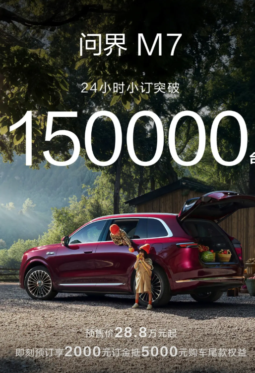 看到问界M7的150000订单海报,就不由自主的想到小米YU7。 虽然一个是小订,一个是大定,口径不完全一样,但总之都是现象级的多了。 关键两个还都是30万级的SUV,问界M7主销应该是增程,小米SU7就比较简单,全是纯电,一定程度上也算是手机圈的华为和小米这俩大哥给车圈友商们的一点“小震撼”,尤其是曾经的新势力头名蔚小理三兄弟,肯定汗颜了…… 不过订单是订单,产能才能决定交付,问界M7和小米YU7谁的稳态销量会更胜一筹呢?