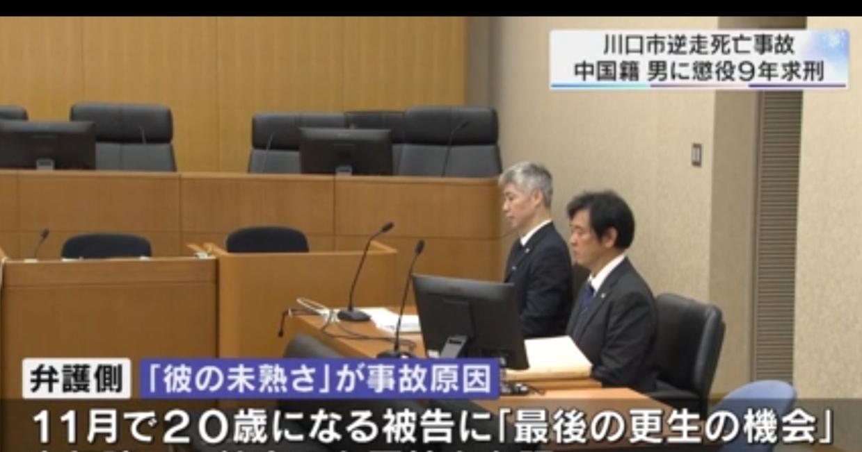 酒驾的代价可能换9年监禁 起诉书显示,一名当时18岁的中国籍男子于去年9月在川口市以约125公里/小时的速度酒后驾车,在川口市中町的一个十字路口,与一辆正常行驶的汽车相撞,导致对方51岁司机死亡。 在本月2日的一审中,该男子承认酒后驾车,并否认了部分起诉书,称“直到临近路口才注意,当时我能够像往常一样控制汽车”。 在5日的量刑听证会上,检方指出,被告当时以约125公里/小时的速度行驶,约为限速的四倍,“驾驶当时极其危险”,动机是“由于以自我为中心和自私”。 检方要求判处其 9 年监禁,称“刑事处罚是适当的,不适用保护性处置措施”。 辩护方称:”事故原因是“他的不成熟”,并辩称,“被告将于 11 月年满 20 岁,需要在少年拘留所接受教育,这是他最后的改过机会”。 肇事男子在最后陈述中表示,“我不会忘记那场严重的事故和夺走他人生命后的愧疚,当我回到社会时,我想向死者家属道歉”。 判决将于本月19日宣判。