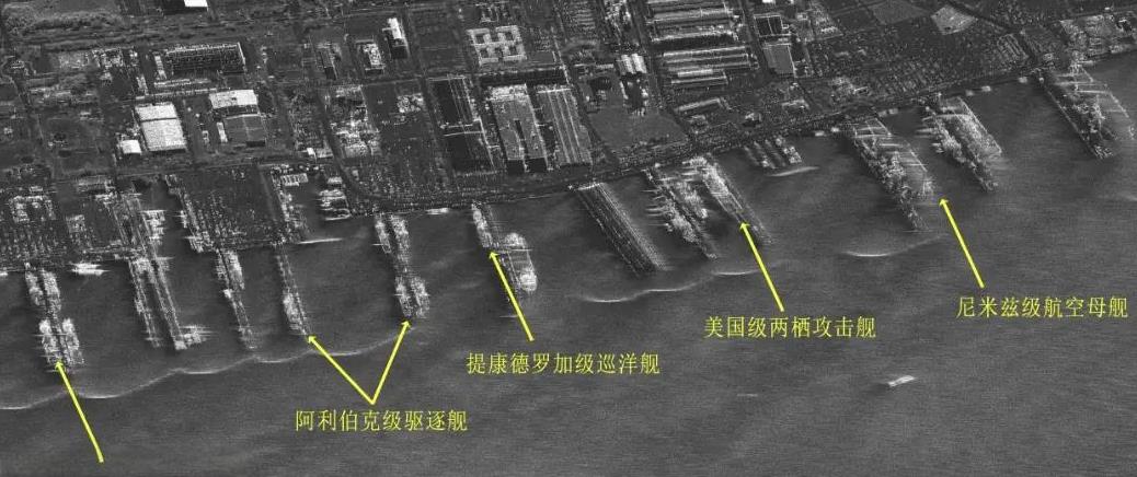 中国卫星掠过美军军港,点名美国海军主力舰艇! 这幅雷达成像是中国智星二号A星在今