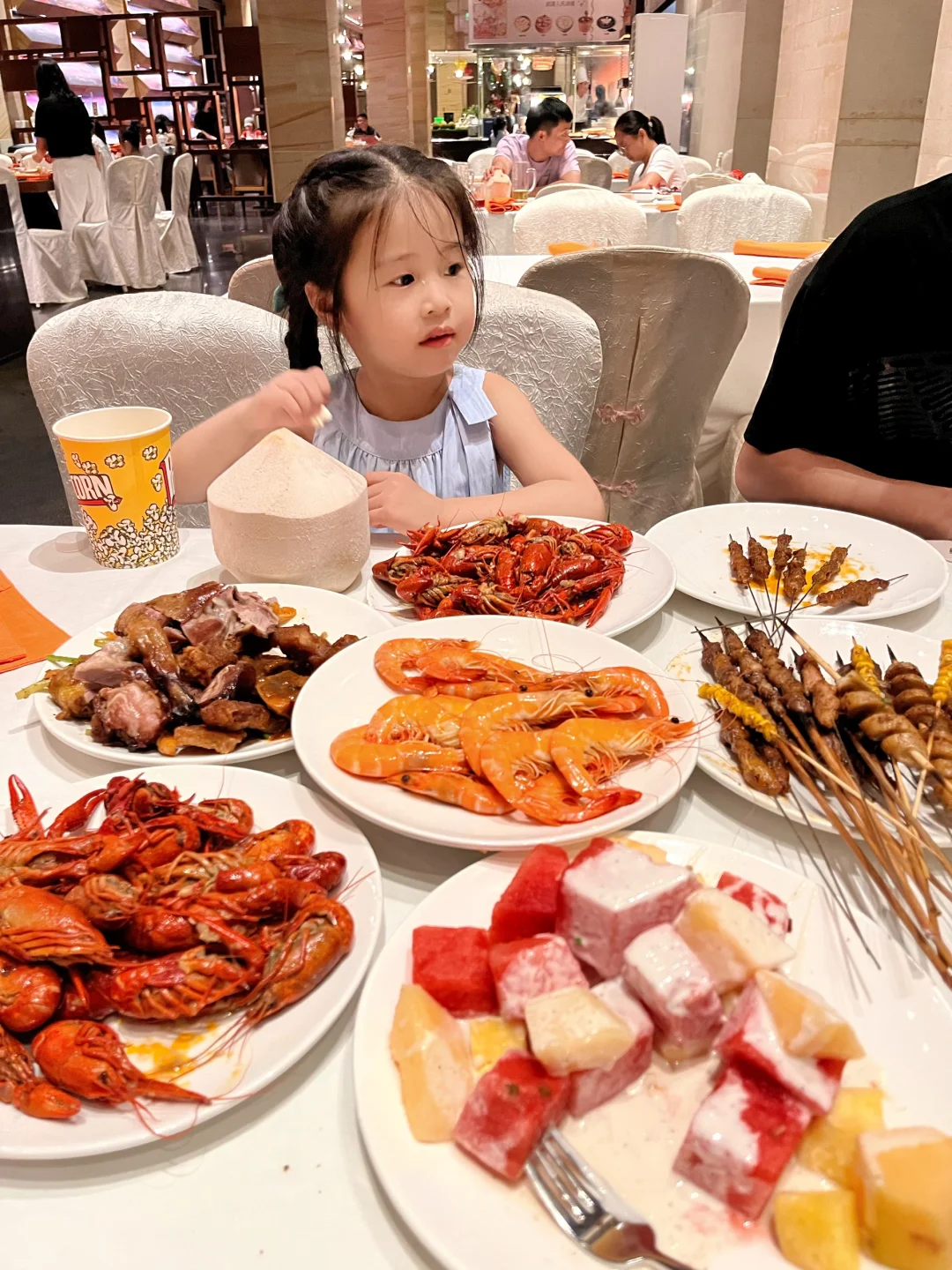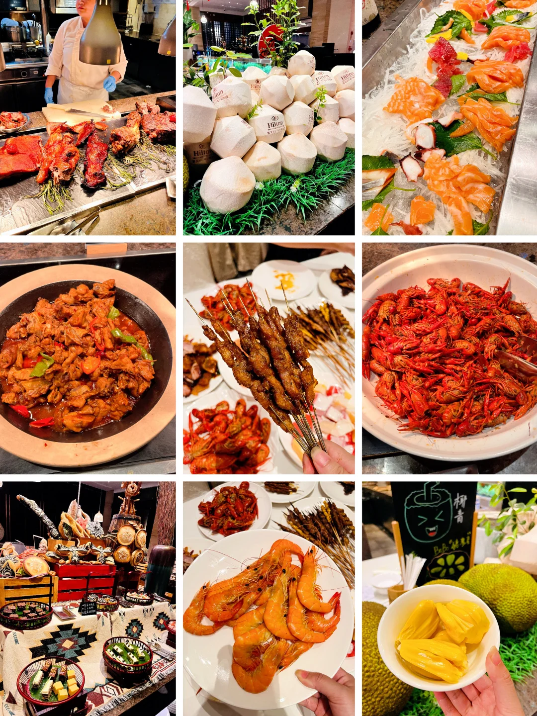 晚上我们吃的自助晚餐,有烧烤、还有各种海鲜🦞、菜品种类很丰富,饮品、甜品、水果应有尽有……