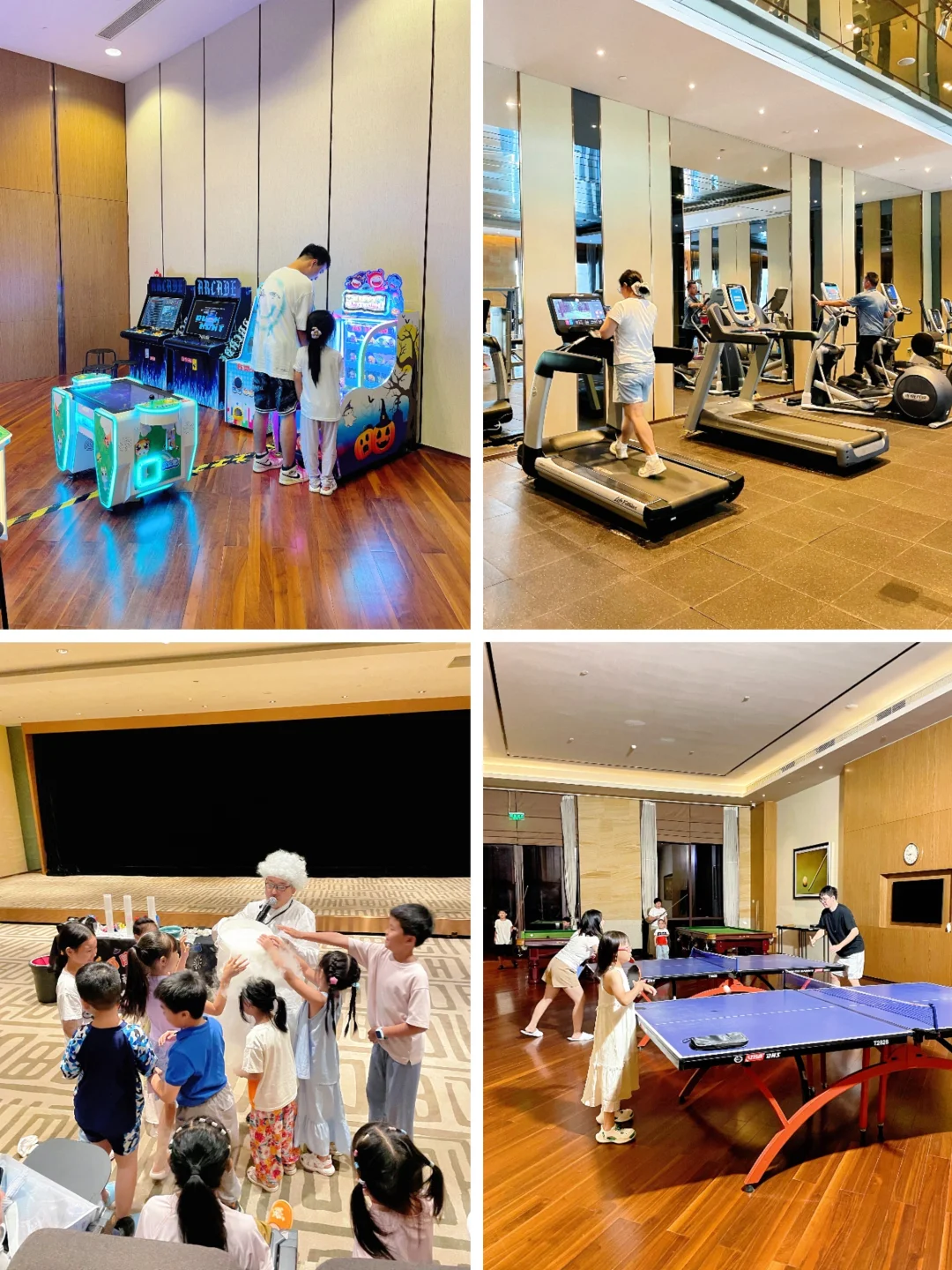 室内有:亲子乒乓球🏓台球🎱方格对战🟨室内游泳池、投篮机🏀以及各种手工小课堂🪣,还有小朋友都喜欢💕的科学实验室小课堂,小朋友们都很积极的参与上台互动,简直不要泰有趣!