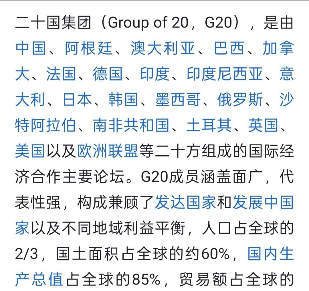 G20怎么来的?就是发现G7很多事情都解决不了了,没有新兴国家加入,他们也就开开会喊喊口号就拉倒。然后才搞了个G20。没有中俄参加,不说全部吧,你大部分议题都是放屁