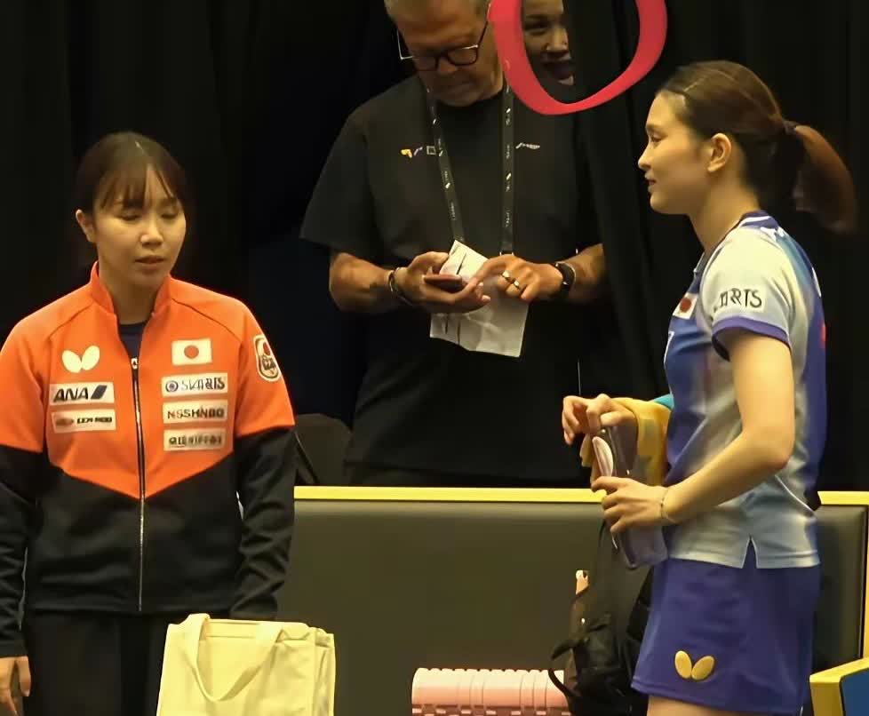 老钱不愧是昨天唯一赢日本队的人, 桥本帆乃香的比赛, 突然露出一个人头, 仔细一看, 这么漂亮, 那肯定是老钱。 这难道是来偷偷研究来了[呲牙] 下一场, 徐奕对桥本帆乃香, 知己知彼百战百胜, 老钱过来研究挺好, 给她个小红心[笑哭]