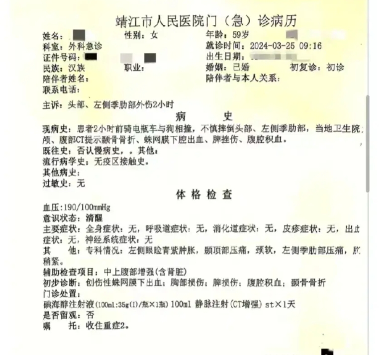 王大妈被送医后,经过医生检查,她颅骨骨折、多发肋骨骨折,全身多处损伤,被送到重症监护室治疗。