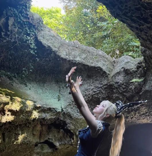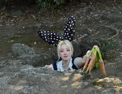 宋小兔上线,带着4个真的胡萝卜,可萌可萌的。 但非常对不起宋雨琦,因为此情此景我却突然想到了董璇家的“张小兔”。 言归正传,宋雨琦是怎么找到这么有趣的地方啊。刚开始我还以为这应该是个特别小的洞,她大概是半蹲着拍照,结果看到后面才发现洞很大,也很深。 那么,新的问题来了,图1-3宋雨琦下面是凳子还是梯子呢? #记录我的2025#