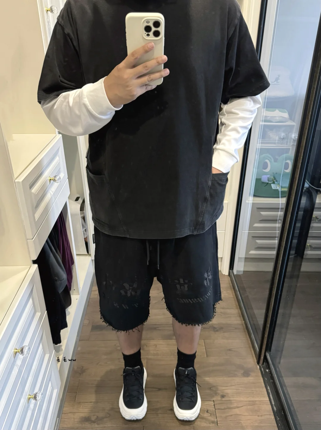 -黑白对比色,有效叠穿,分享给喜欢极简的小伙伴;带口袋的体恤是不是很有细节,这件插兜Tee之前常穿黑白纯色,最新的水洗色也是不错的选择 . —————— . 👕Expensive Taste // M . 🩳Expensive Taste // M . 👟HOKA Hidden / tor summit 2 // 42 . —————— . ✏️本人178cm75kg 球鞋尺码265mm(正常EU42) . 💭以上均为我个人观点,不喜勿喷,欢迎讨论