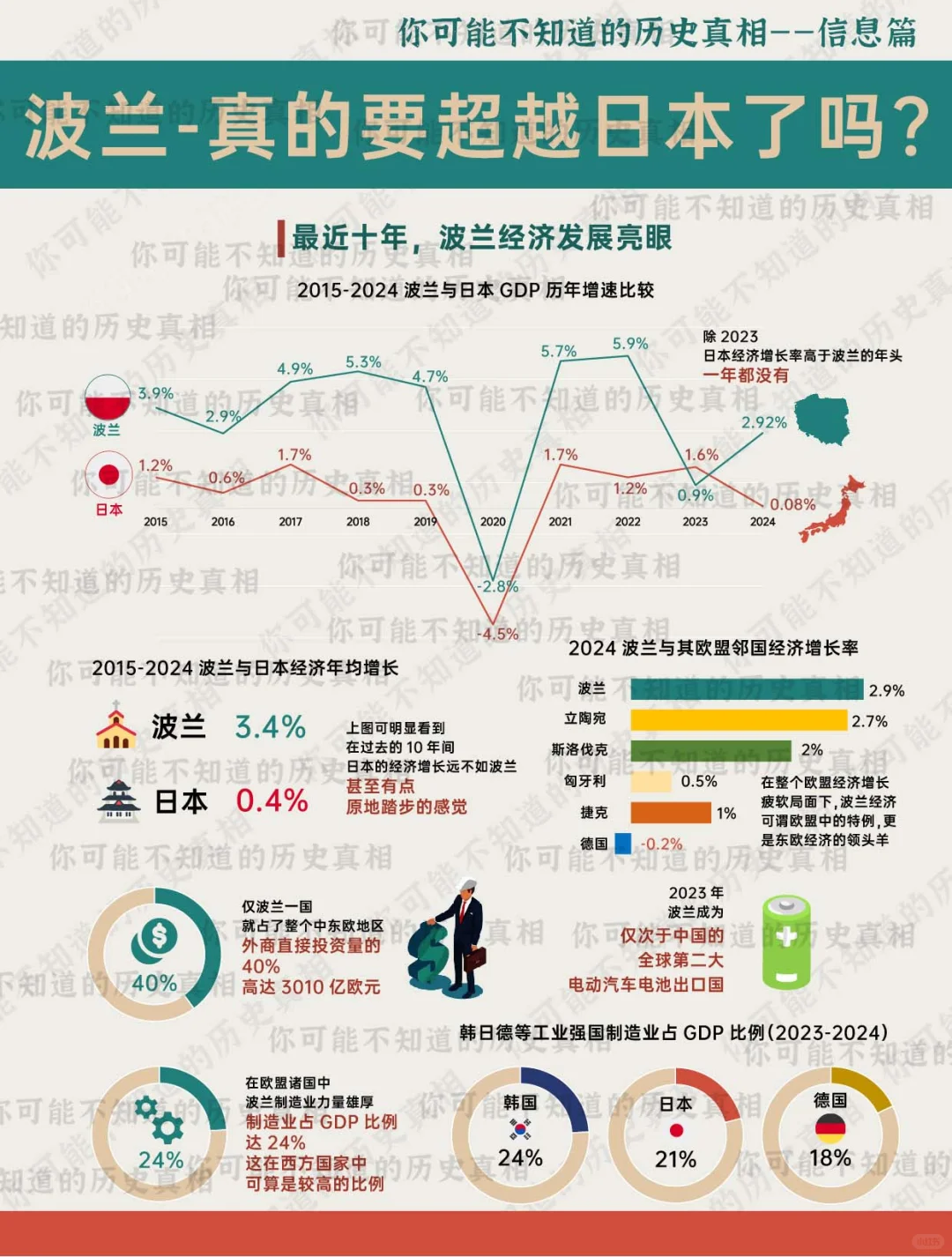 近日网络一则新闻介绍 经过购买力平价调整后的波兰人均GDP 已非常逼近日本 如按照目前经济走势发展下去 波兰人均GDP即将超越日本 那么 纵观波兰整体经济与国力 波兰在未来 又是否真的能全面超越日本? 成为又一个引领全球的发达国家 又或者 不过是又一个依靠外国投资 来制造好看经济数据的另一个 高配版的越南? 历史 世界历史 经济 波兰 日本 欧洲 东欧 欧盟 人均GDP 发达国家 波兰,是不是高配版的越南? [投票]