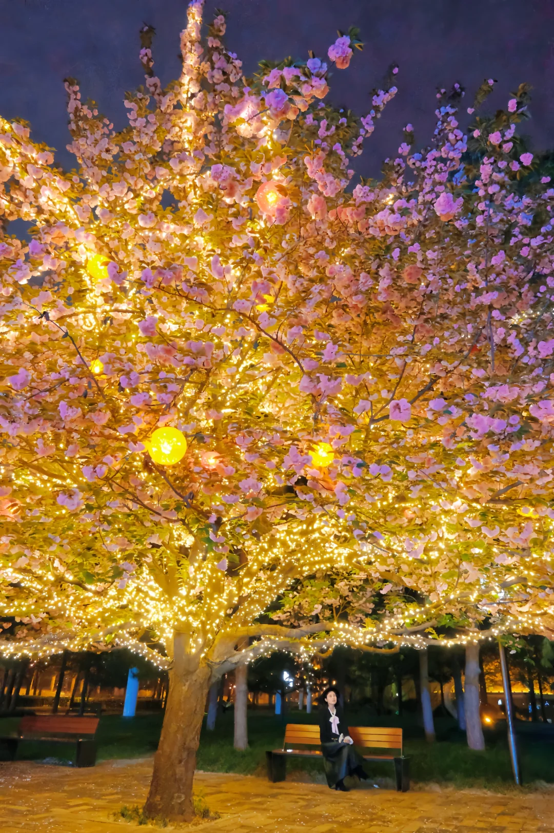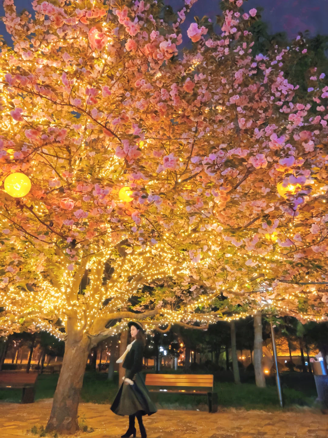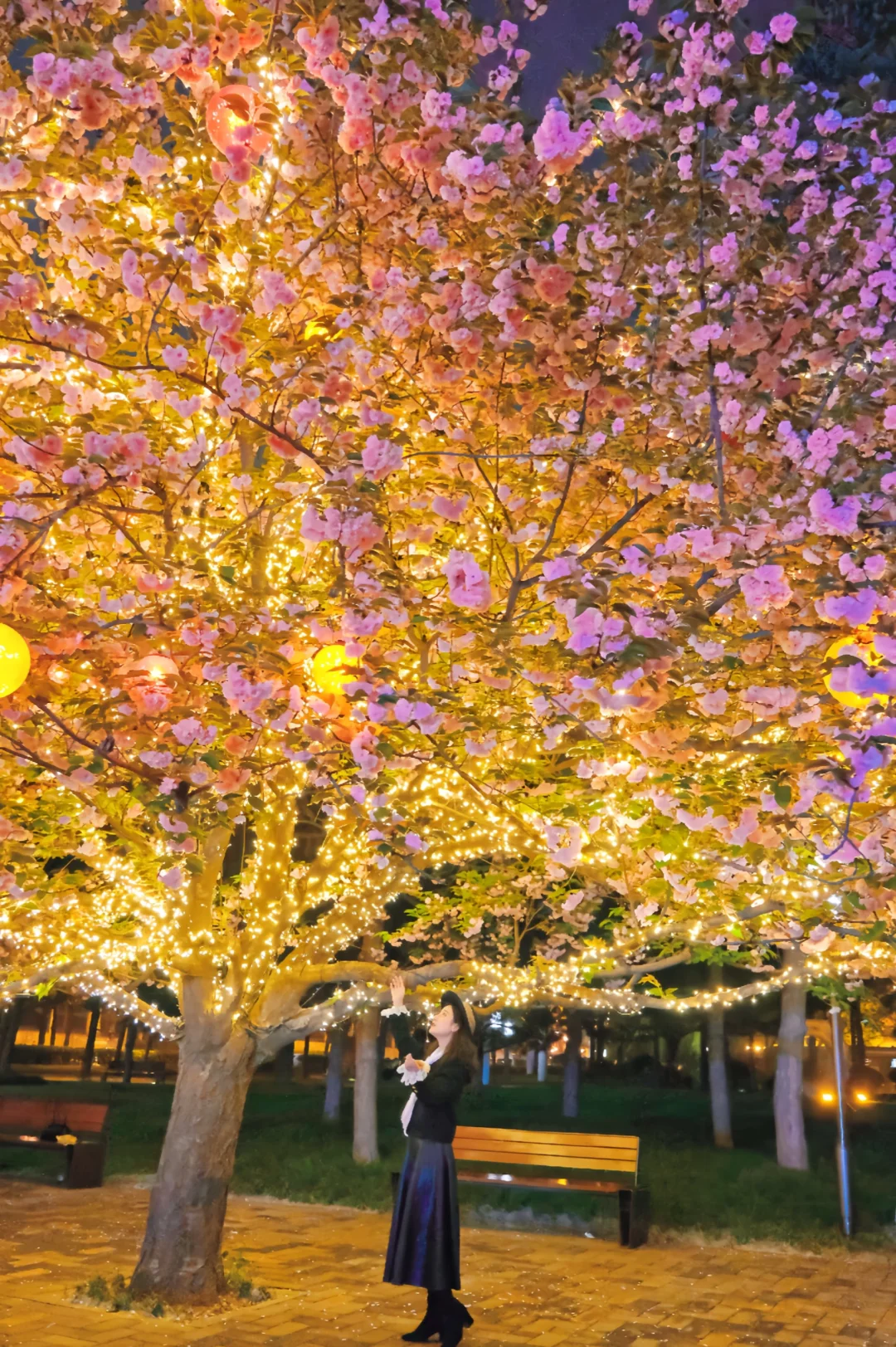谁懂呀,一眼沦陷❗️西安这里的夜樱已开爆🌸