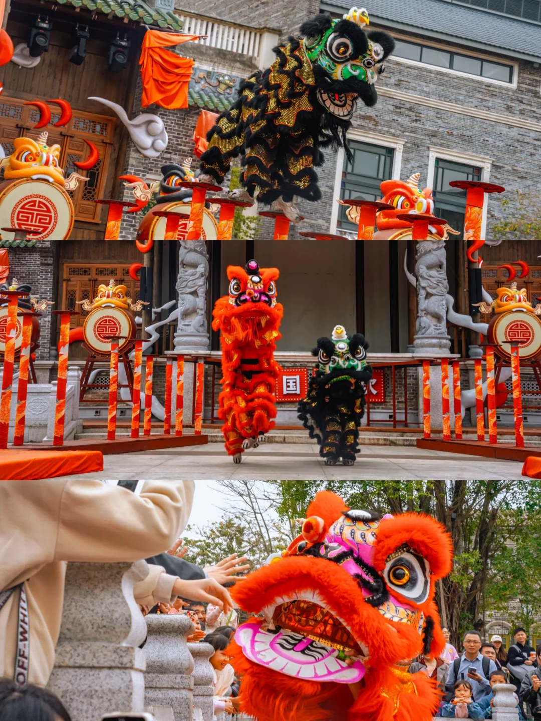 可以一睹岭南醒狮踩梅花桩斗武的精彩演出