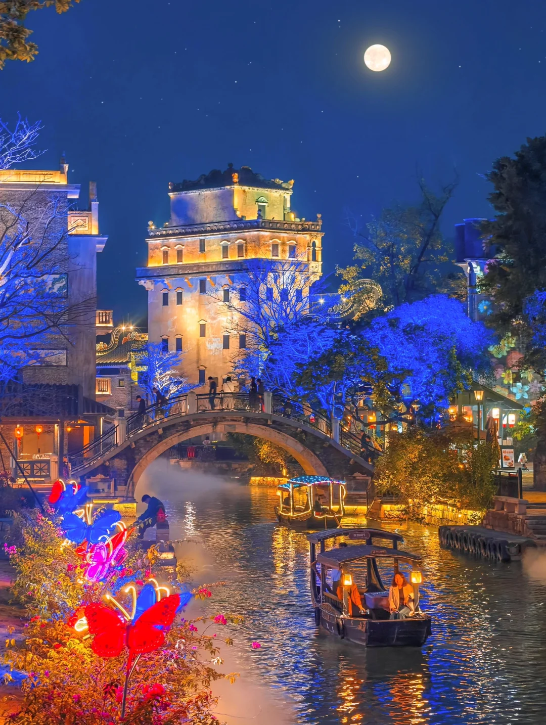 又有下江南般的摇橹船,年代感十足的铛铛车