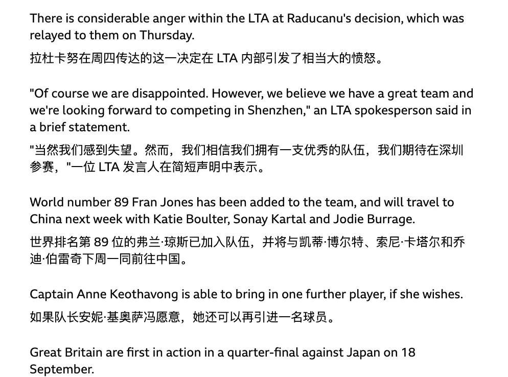 拉杜卡努的最新消息来了! 她已经退出深圳“比利简金杯”总决赛,将持外卡参加同期的WTA首尔500赛。 有网友说,比利简金杯毕竟是代表国家参赛,随意退赛有点太没有担当了,怪不得英国网协内部不高兴。 而有些网友觉得拉杜做的选择很正确。 因为比利简金杯没有积分,对于状态正在回升的拉杜来说,现在当务之急是赚积分回归种子席位。 大家支持哪种观点呢?